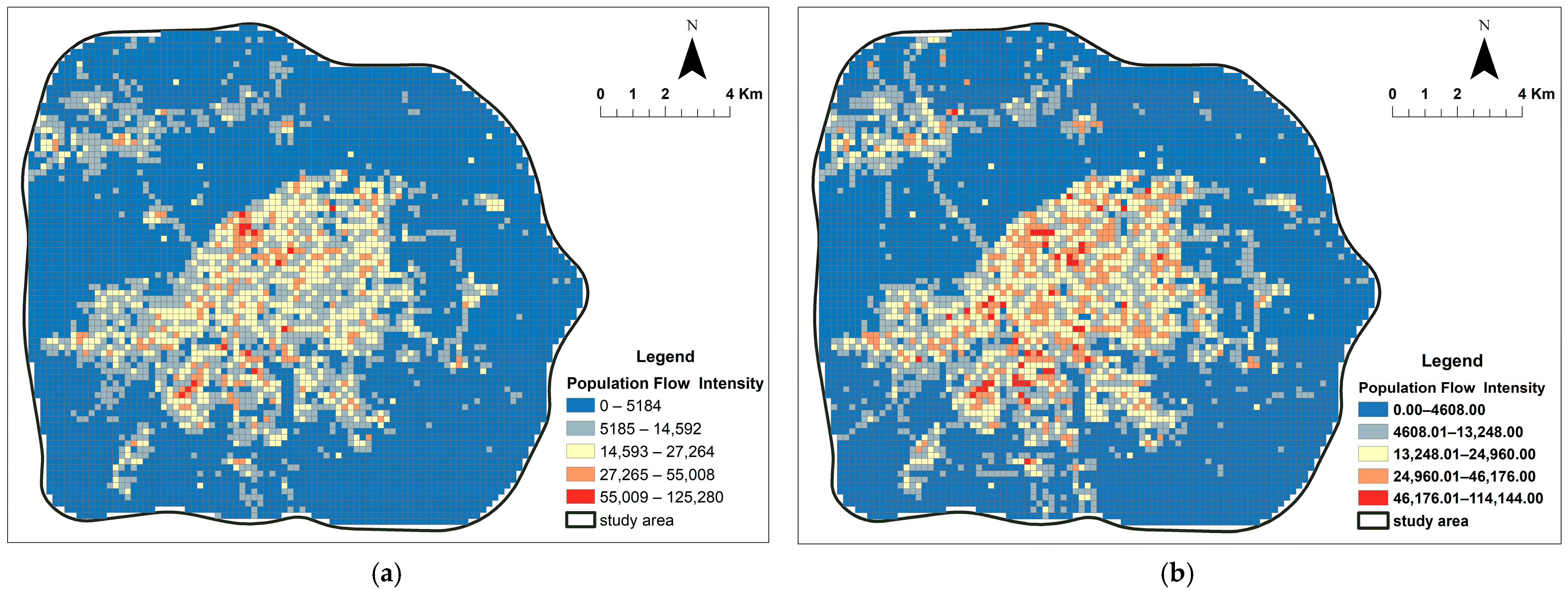 Compared to administrative boundaries, regular grids better align with the spatial continuity of human activities, avoiding distortions introduced by artificial demarcations. Although the modifiable areal unit problem (MAUP) exists, the macroscopic patterns and conclusions derived from this study demonstrate considerable robustness to variations in grid parameters [25]. Future research could employ multi-scale analysis to further examine granularity sensitivity and enhance the universality of the conclusions.