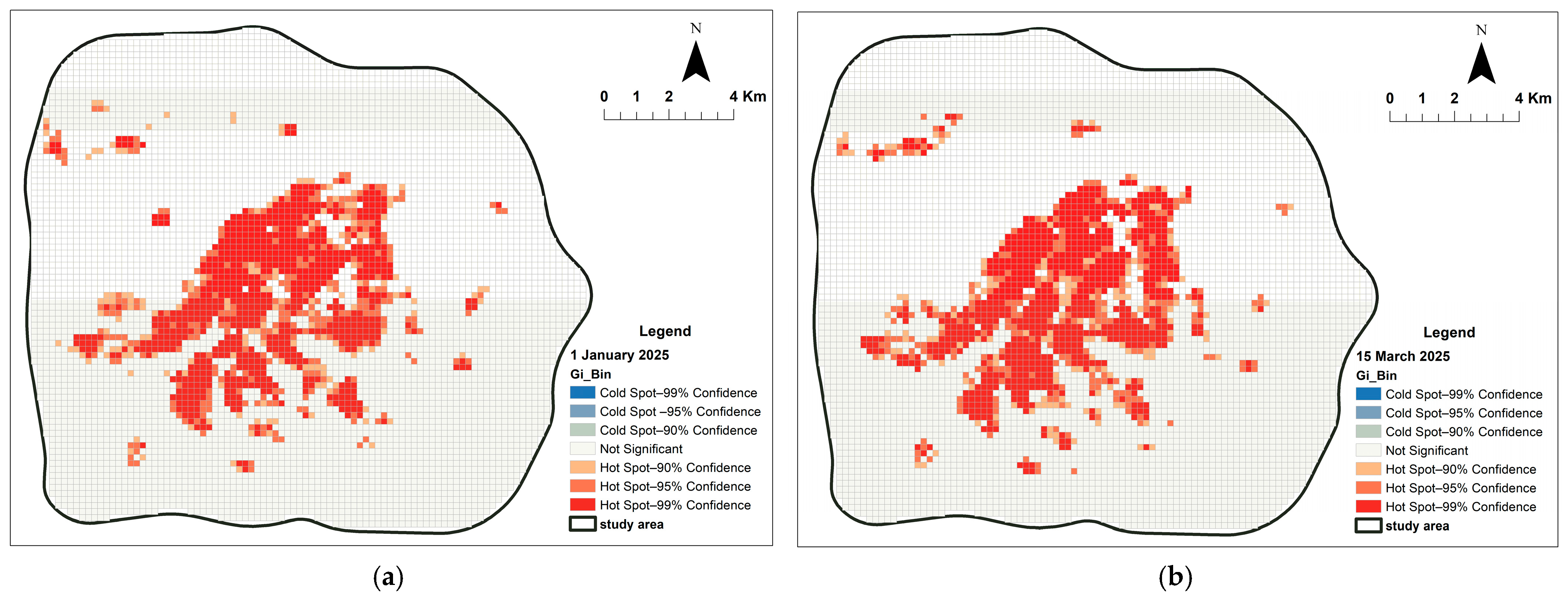 This study selected 1 January (New Year’s Day, peak season) and 15 March (off-season Saturday) as typical periods for comparative analysis. 1 January, representing the winter tourism peak, exhibits a “monocentric polarization” agglomeration pattern primarily driven by inbound tourist flows, which is conducive to observing urban carrying capacity and holiday economic effects under extreme passenger flow conditions. The off-season Saturday reflects the normalized distribution pattern driven by the daily demands of local residents, revealing the spatial equilibrium of the city’s basic service functions and its underlying daily vitality base. Verification confirms that no public security incidents, data anomalies, or extreme weather interference occurred on either day, ensuring data reliability.