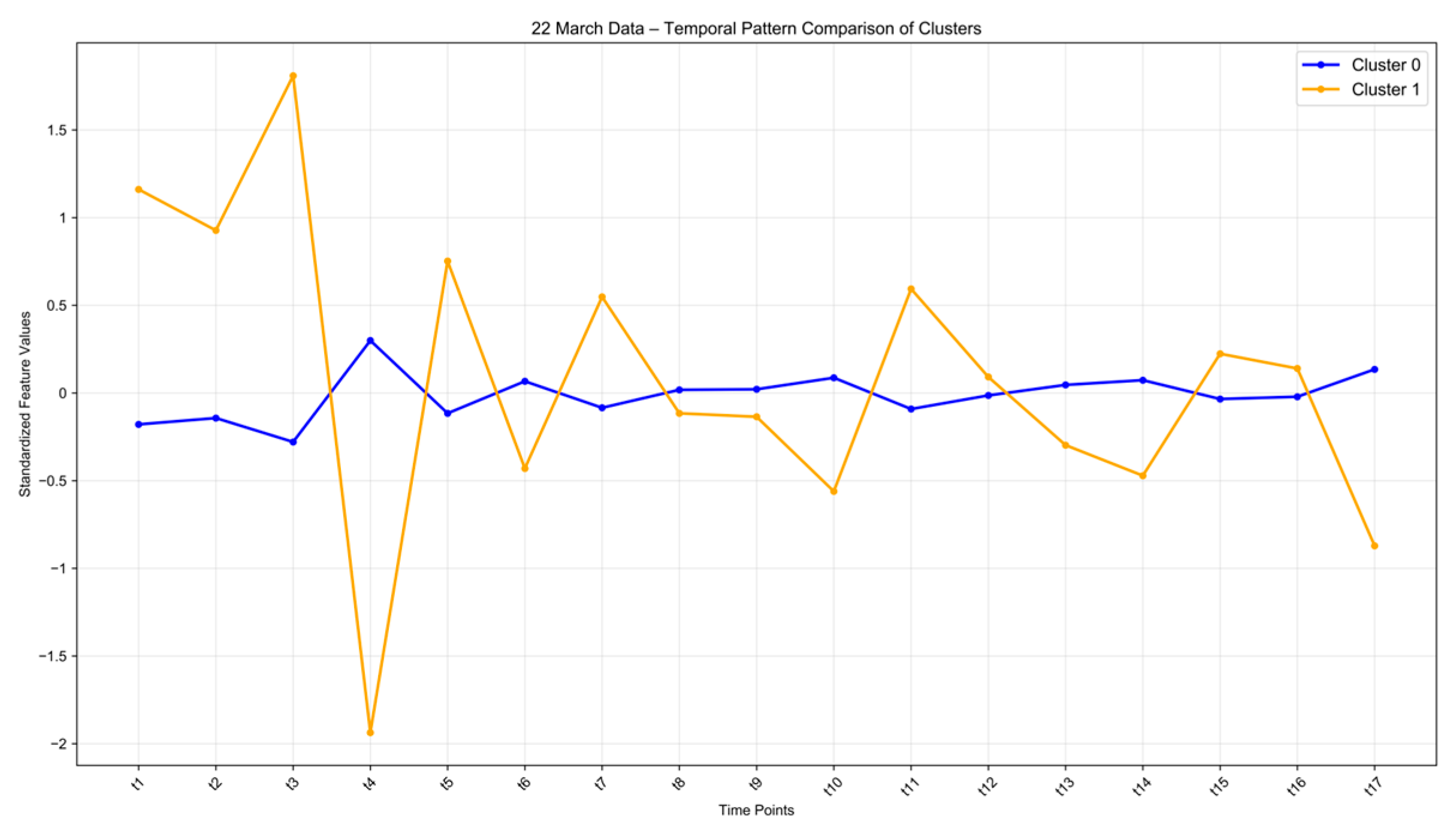 During the tourism off-season, in contrast to the overall gradual and sustained patterns of the peak season, Cluster 1 exhibits a pattern of general stability with localized fluctuations, as detailed in Figure 10. This is primarily because the peak season is driven by a continuous, steadily influx of external tourist traffic flows, whereas the off-season is propelled by the daily commuting and essential life trips of local residents, resulting in a more pulsating and volatile pattern. These areas primarily serve a transit or through-traffic function during the peak season but exhibit lower vitality during the off-season. Consequently, urban management should focus on enhancing the basic services in these areas to improve their year-round resilience and prevent seasonal underutilization or functional decline.