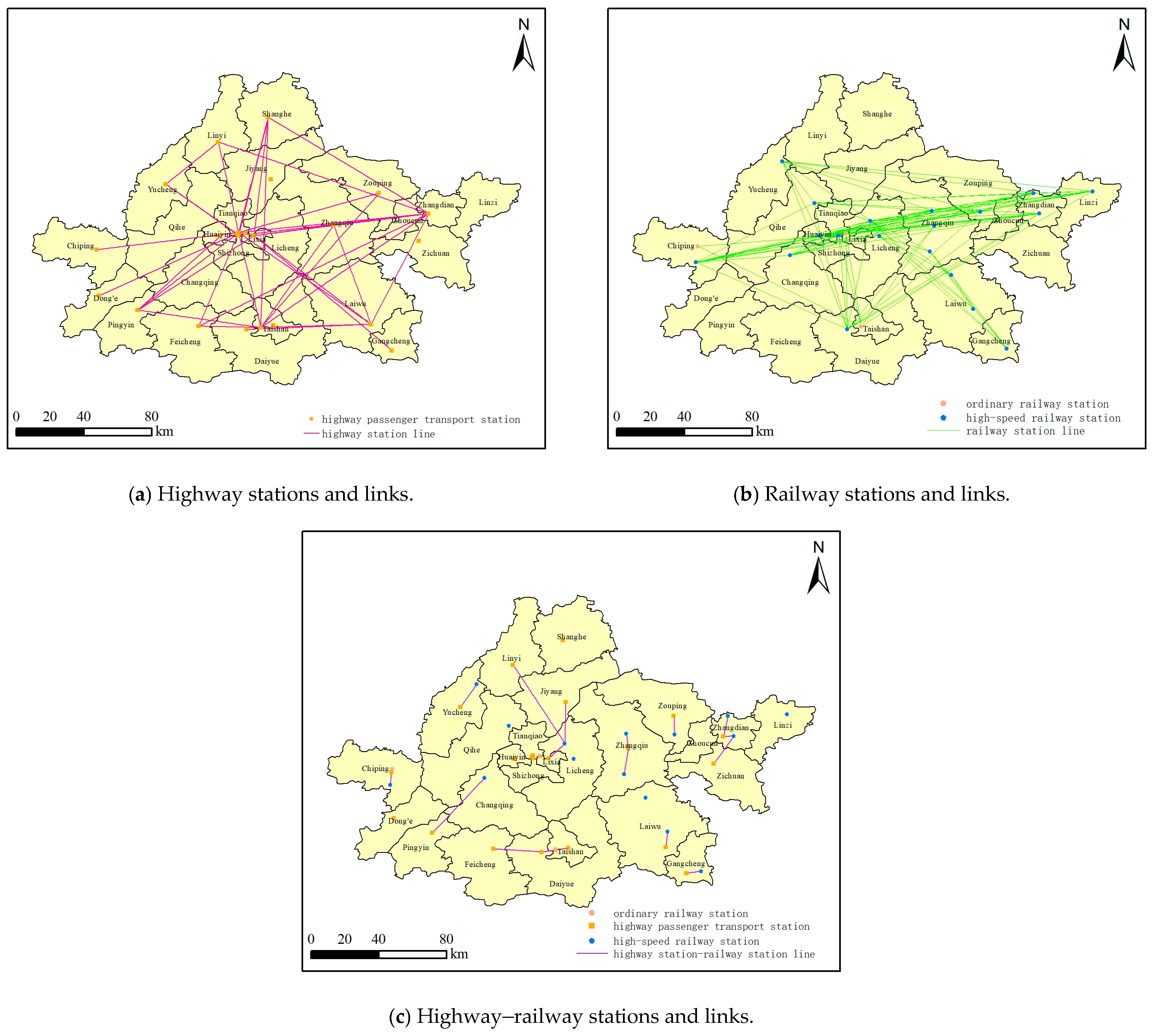 3.1. Building a Multi-Modal Transportation Network in the Jinan Metropolitan Area