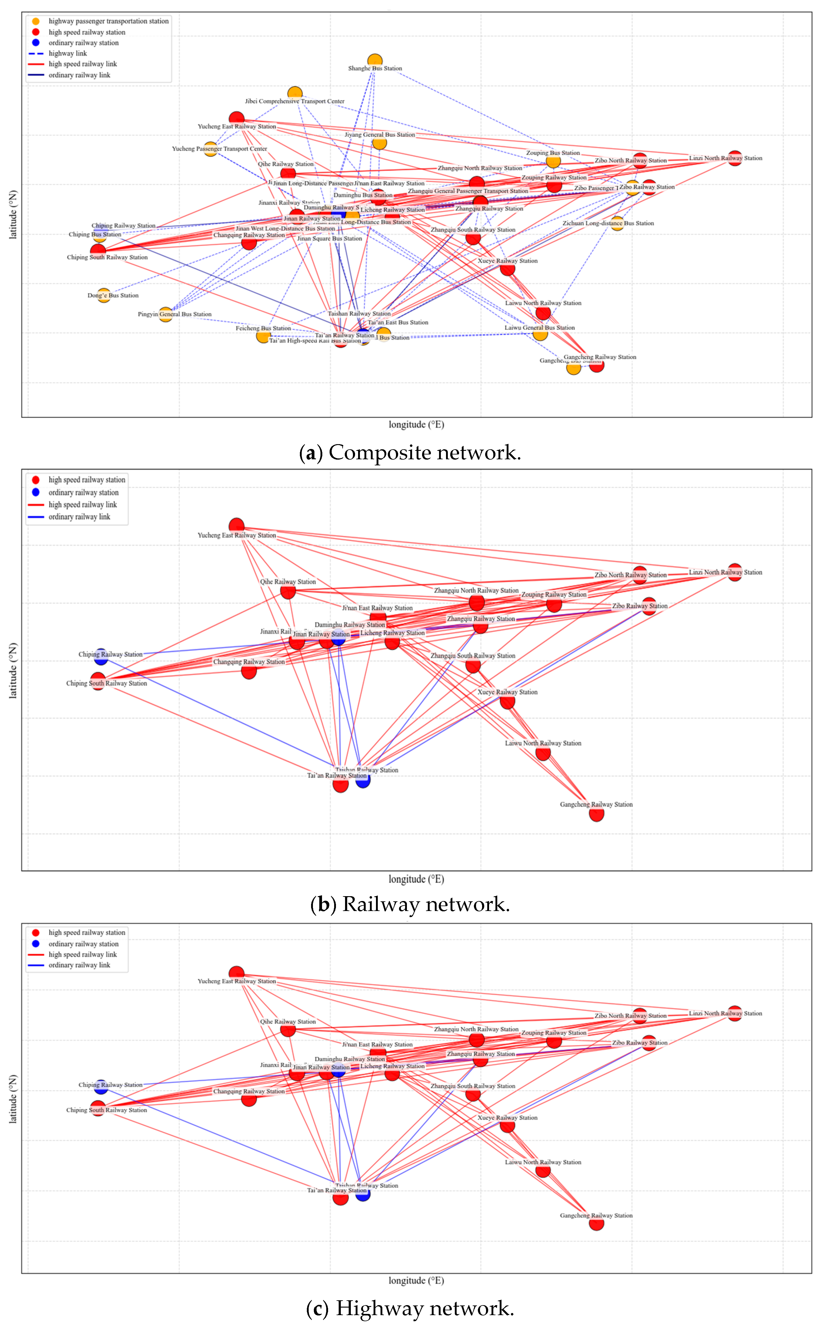 3.2. Structural Attributes of Jinan Metropolitan Area’s Multi-Mode Transportation Network