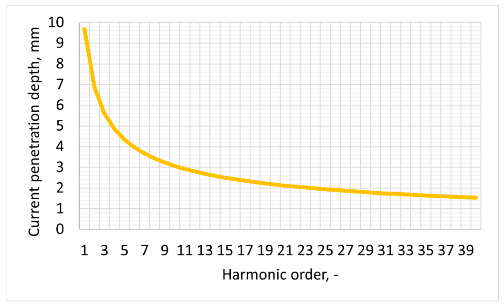 The value of the current penetration depth indicates how deeply a given harmonic current penetrates the cable core when viewed from the outside. This value depends on certain physical parameters of the conductor and is expressed as follows: