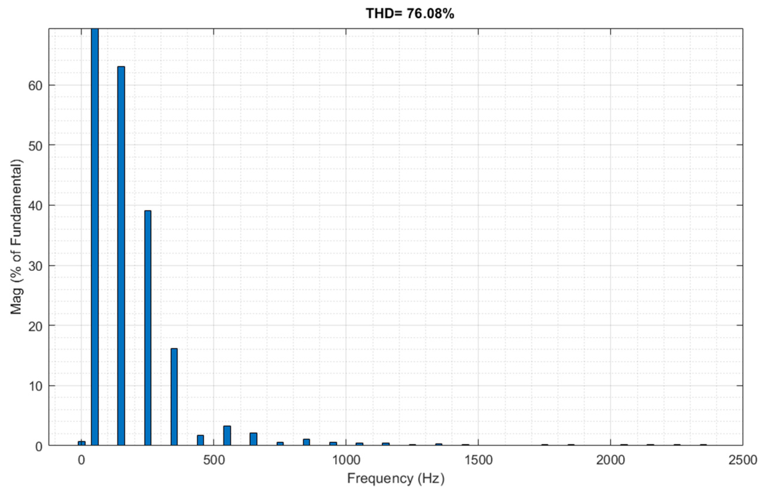 The THD of the load current is 76%. The harmonic spectrum is shown in