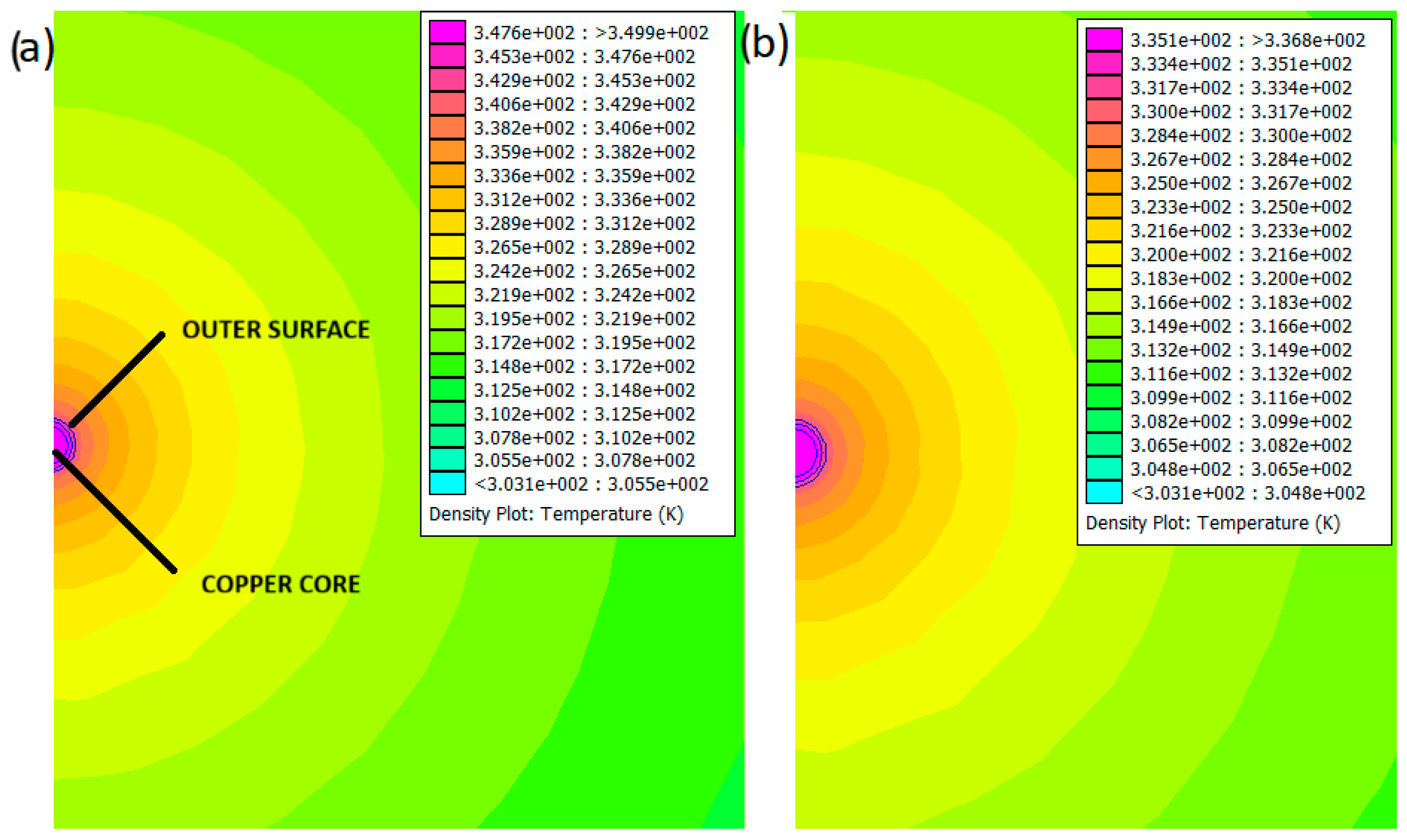 For the cable insulation, outer sheath, and surrounding environment, the heat flux is assumed to be zero, and only the k value of the material changes.