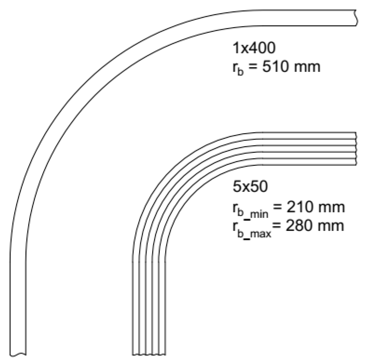 Table 9 should be analyzed in relation to cable trays and the possibilities of each arrangement on them. On straight sections, the 5 × 50 model takes up the most space, while the 1 × 400 model takes up the most space on bends because of its large bending radius (