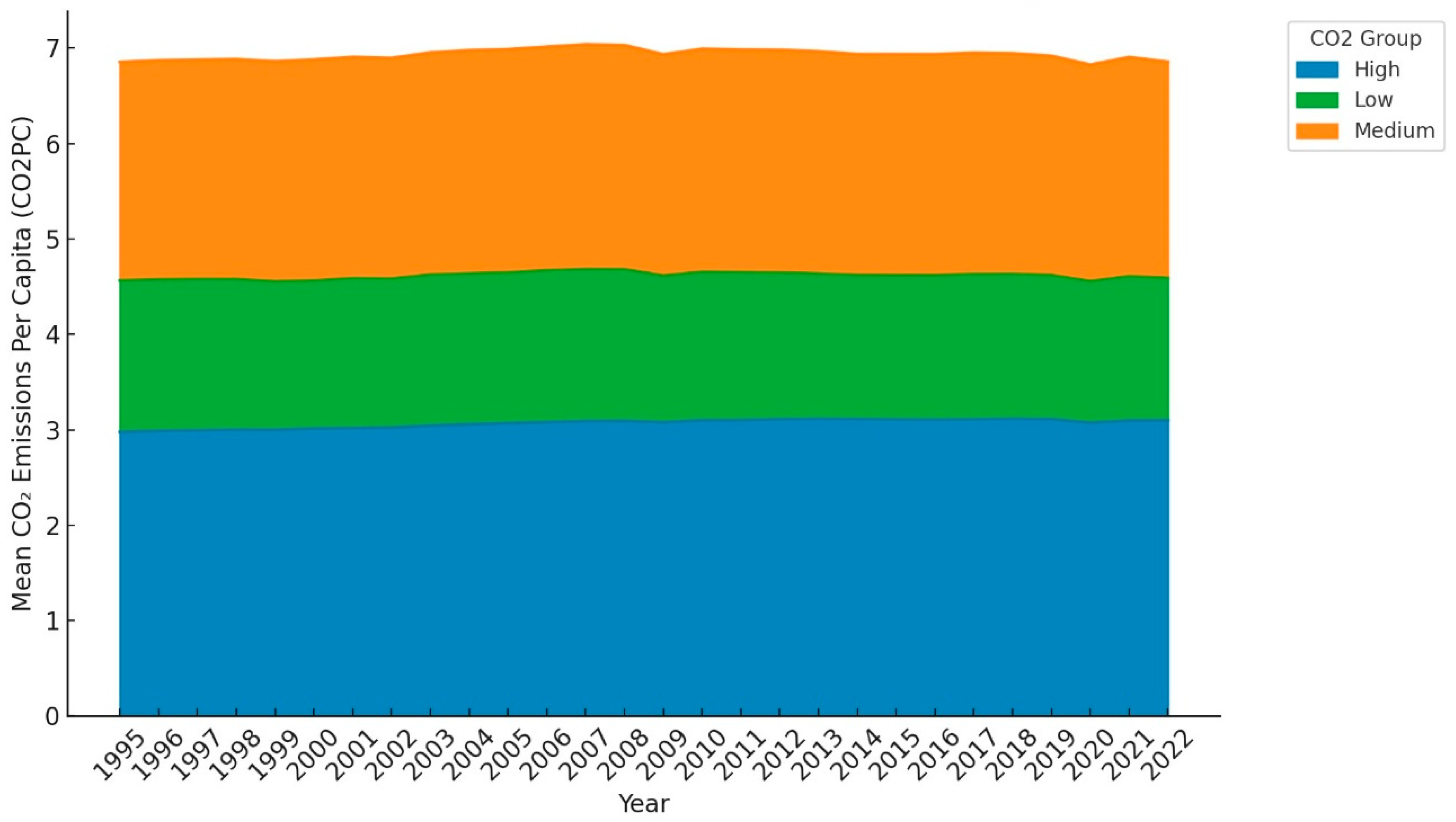 Over the last three decades, transportation has been a leading sector contributing to environmental pollution, and several initiatives have been taken to mitigate these emissions [49]. The transportation sector accounts for nearly 26.5% of greenhouse gas emissions [50]. From Sweden, Larsson, Kamb [51] found that continuous international travel significantly increases CO2 emissions. In G7 countries, Jahanger, Ozturk [46] analyzed the dataset from 1994 to 2020 using MMQR and concluded that air transportation significantly increases CO2 emissions. They added that green innovation can mitigate the negative impact of air transportation on environmental sustainability. In the context of Pakistan, Danish, Baloch [52] utilized the vector error correction model (VECM) and the autoregressive distributed lag (ARDL) from 1990 to 2015 to conclude that transport energy consumption is responsible for environmental deterioration. Using Wavelet quantile regression from 1990 to 2020, Malik, Rehman [28] found that transportation infrastructure, financial development, urbanization, and economic growth exacerbate environmental pollution in Pakistan. Parallel to that, [53] employed NARDL from 19,971 to 2021 and found transportation infrastructure responsible for increasing environmental contamination. Gyamfi, Bekun [54] found that air transport reduces environmental quality; however, rail transport had a favorable impact. Similarly, Rosqvist and Hiselius [55] claimed that passenger transport is a primary source of CO2 emissions. Utilizing data from 2010 to 2019 in the 30 provinces of China, Jing, Liu [56] studied the link between public transportation and environmental contamination. They concluded that public transportation has a favorable impact on environmental sustainability by reducing CO2 emissions. Furthermore, from OECD countries, Churchill, Inekwe [57] claimed that transportation infrastructure substantially increases environmental risk. In the context of 3 Asian countries, Qian [45] investigated the linkage between transportation infrastructure, urbanization, industrialization, and environmental contamination from 1995 to 2020. The results of MG, AMG, and CCEMG estimation techniques found a positive link between urbanization, industrialization, transportation infrastructure, and environmental contamination. The above literature comprehensively establishes the relationship between the transportation sector and environmental sustainability. However, the majority of the existing literature used a single indicator of the transportation sector to examine environmental impact. Nonetheless, we add to the existing literature by developing a more comprehensive transportation index that combines air and land transportation. Motivated by the above, we have proposed the following hypothesis: