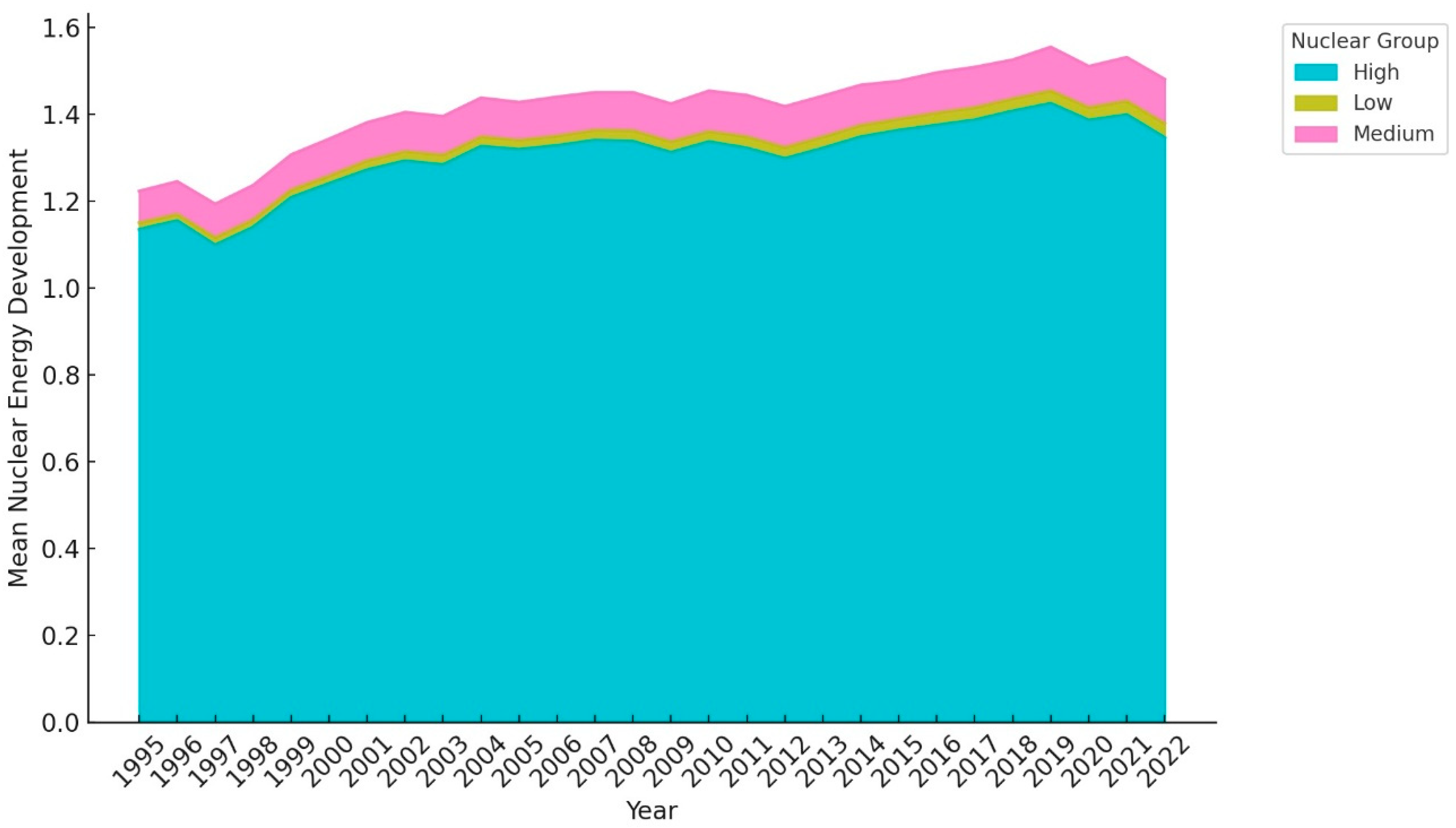 Moreover, earlier evidence from Hori [67] heightened the significance of integrating nuclear energy into the transport sector to lower CO2 emissions. Similarly, Forsberg [26] argued that introducing nuclear energy in the transportation sector could be a viable solution for controlling transport-based CO2 emissions. Jimenez and Flores [68] highlighted the economic, health, and environmental benefits of nuclear energy-based zero-emission transport vehicles. From the maritime transport Wang, Zhang [27] found nuclear energy to be a crucial factor in lowering environmental risk in the Arctic region; however, it is attributed to governance and safety challenges. Furthermore, Michaelides and Michaelides [25] illustrated nuclear energy as a feasible solution for substituting fossil fuel-based energy. The above discussion sheds light on the direct relationship between nuclear energy, transportation, and environmental sustainability. This discussion also shows that incorporating nuclear energy into the transportation sector’s energy portfolio can help reduce transport-related environmental crises. Despite this, none of the prior studies examined the moderating role of nuclear energy in the transportation-environmental sustainability nexus. Therefore, we have formulated the following hypothesis to address that literature gap.