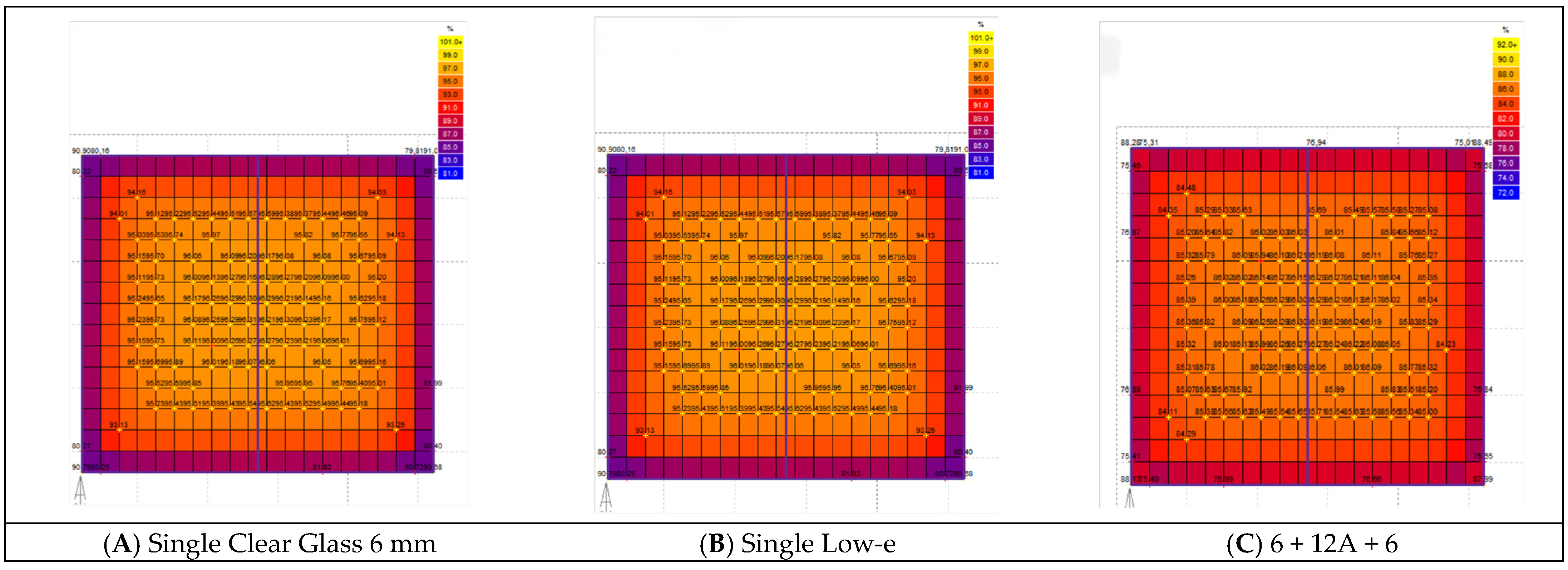 | XI | 6 Low-e + 12Ar + 6 + 12Ar | 0.103 | 0.152 | 0.477 | 0.416 | 0.83 | 0.416 | Hefei |