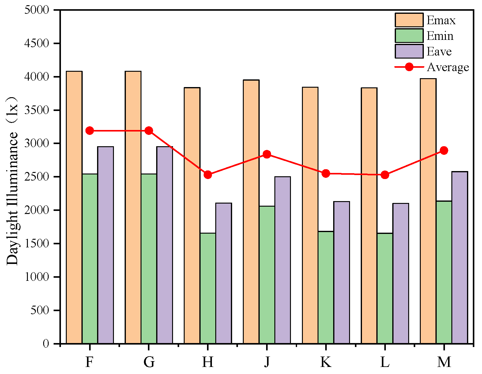 | Outdoor natural critical illuminance E | 6000 | 5500 | 5000 | 4500 | 4000 |