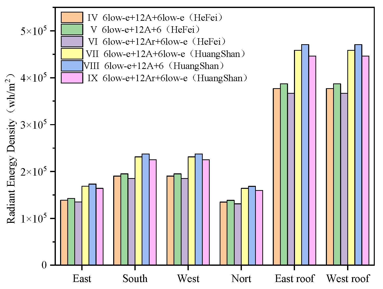 | VI | 6 Low-e + 12Ar + 6 Low-e | 0.13 | 0.111 | 0.720 | 0.75 | 1.60 | 0.648 | Hefei |