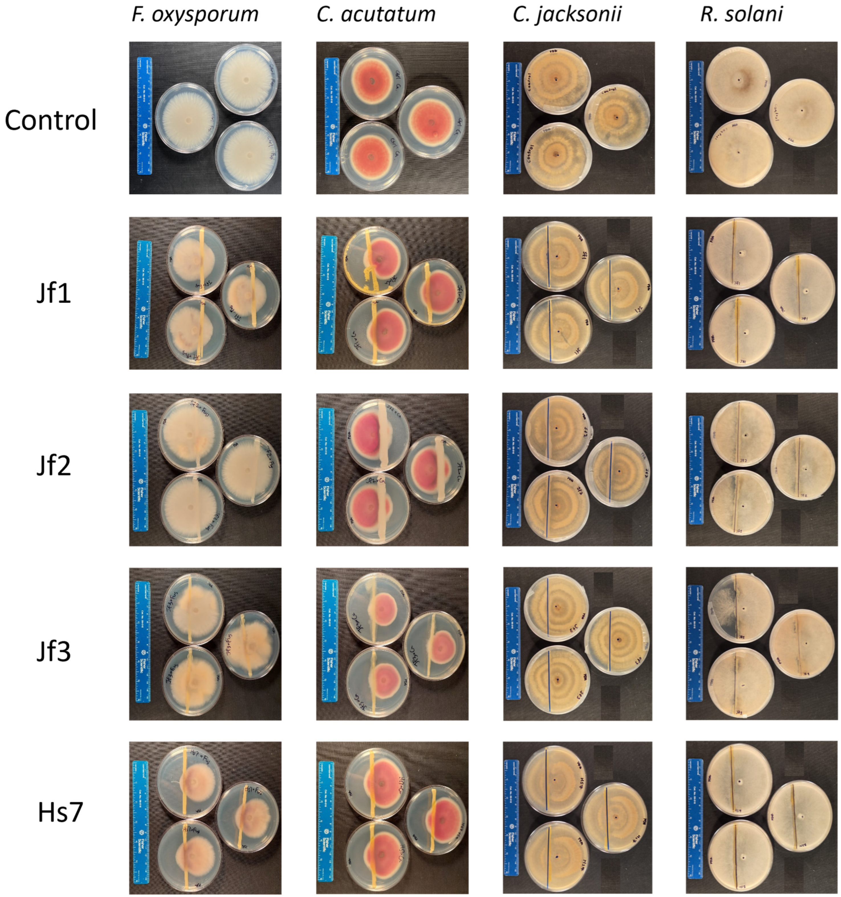 2.6. Dual Culture Assays with Common Fungal Pathogens