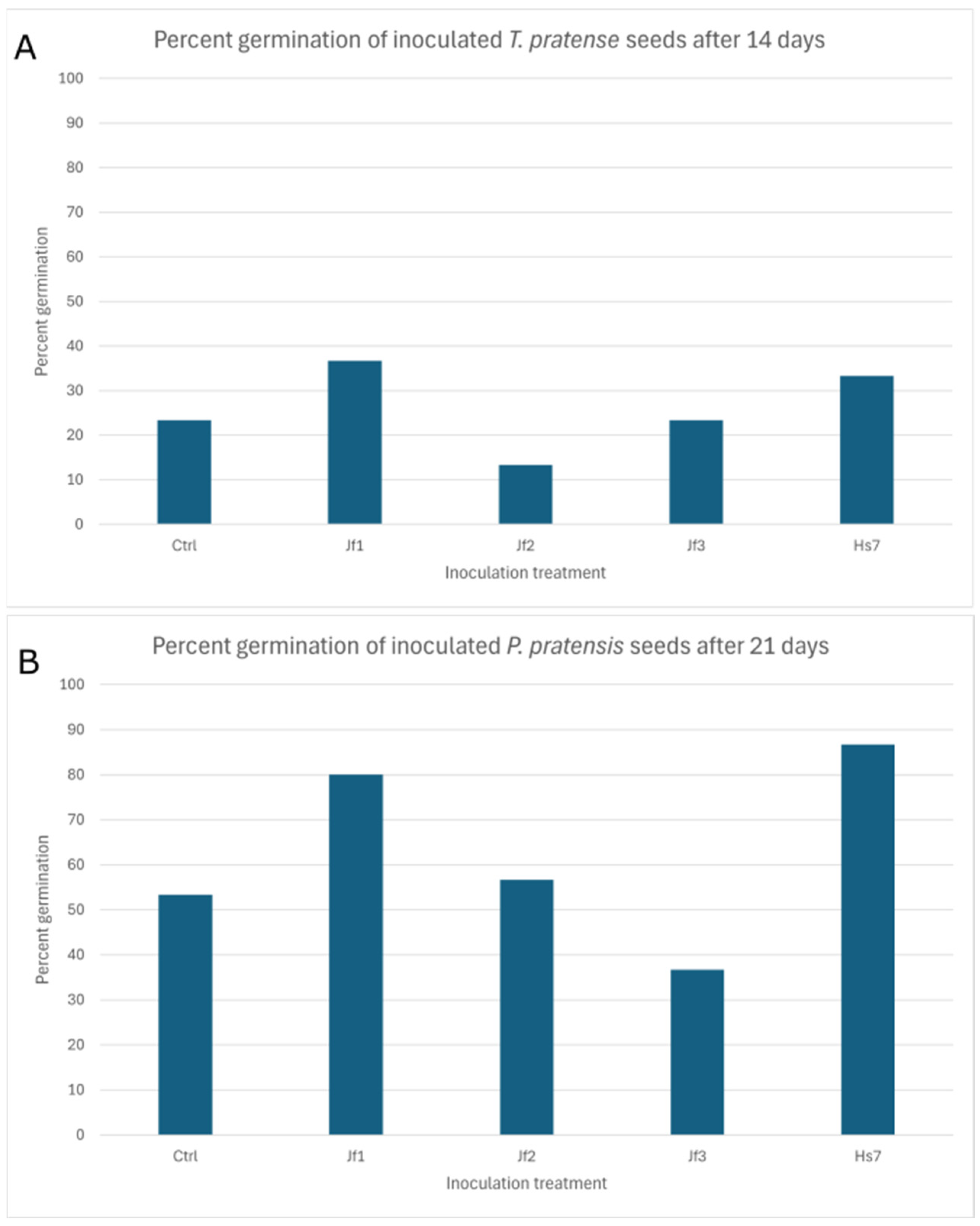 2.7. Inoculation Tests with Trifolium pratense and Poa pratensis