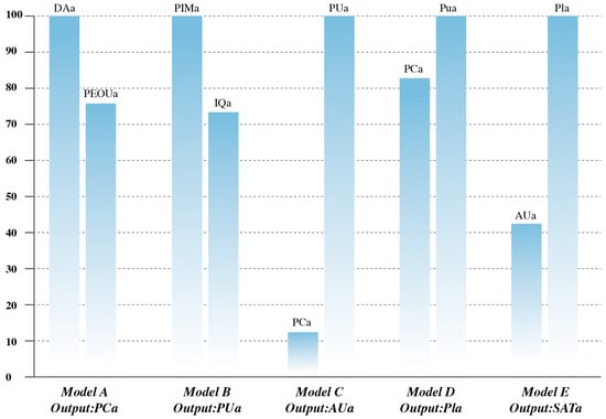 PU reflects the extent to which users believe that using a specific information system can enhance their work efficiency, including self-awareness, learning quality, and productivity []. Researchers have viewed PU as an extrinsic motivation to understand how different types of users adopt new technologies, such as personal computers [] and consumers using virtual stores []. These studies indicate that PU can help users develop a positive attitude toward using specific technologies or services, thereby increasing actual usage rates [].