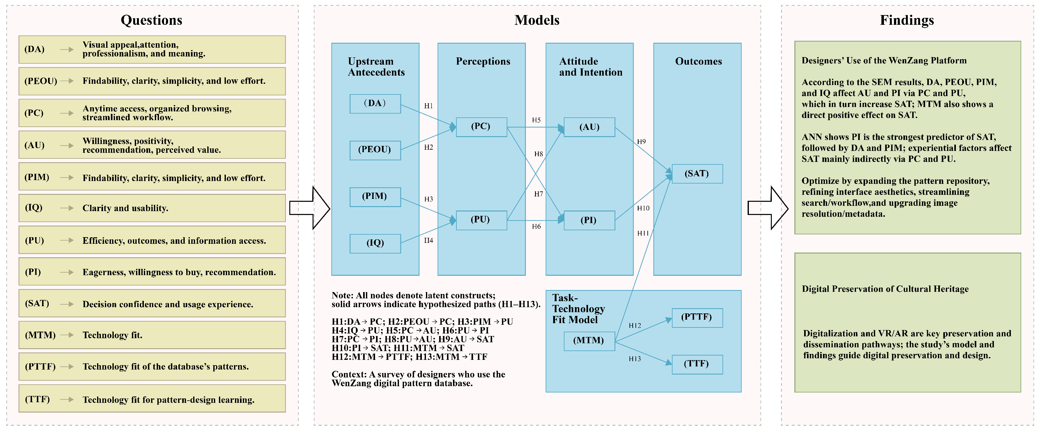 Chicago/Turabian StyleGuo, Wei, Qian Bao, Kyoung Yong Lee, and Mengyao Guo. 2025. "Promoting Sustainable Digital Cultural Heritage Preservation: A Study on Designers’ Satisfaction with a Digital Platform Using TAM, TTF, and ANN" Sustainability 17, no. 23: 10554. https://doi.org/10.3390/su172310554