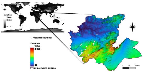 The Fez-Meknes region, located in north-central Morocco, covers an area of approximately 40,075 km2, representing 5.7% of the national territory. It is characterized by pronounced geographical and climatic diversity, ranging from the fertile Saïs plains and peri-urban belts of Fez and Meknes to the Pre-Rif hills, the Middle Atlas and Zerhoun mountain ranges, and southern oasis systems. These agroecological zones include both lowland and montane environments, collectively supporting a wide array of agricultural practices [26].