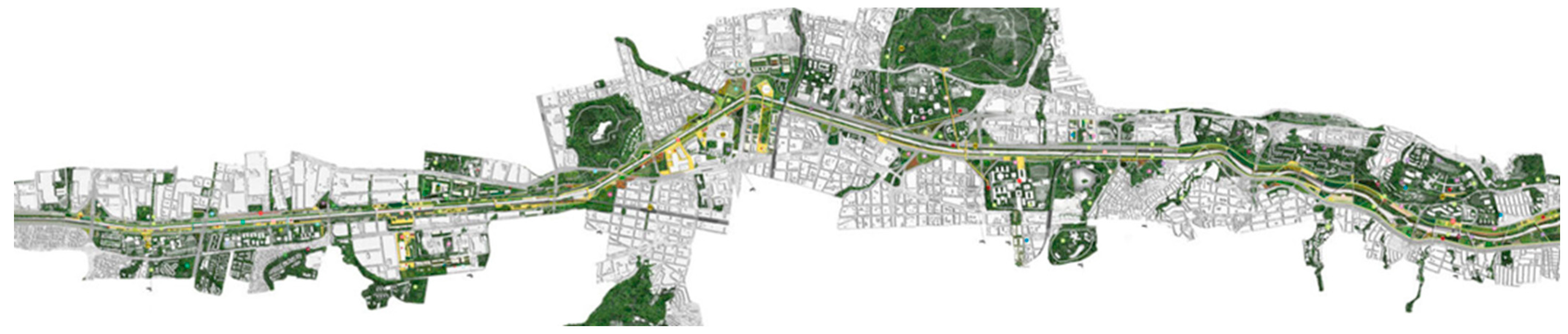 - Echeverri, A.; Orsini, F. Green Corridors of Medellín: Urban Ecology and Social Inclusion in Latin America; Universidad Nacional de Colombia: Medellín, Colombia, 2019. [Google Scholar]