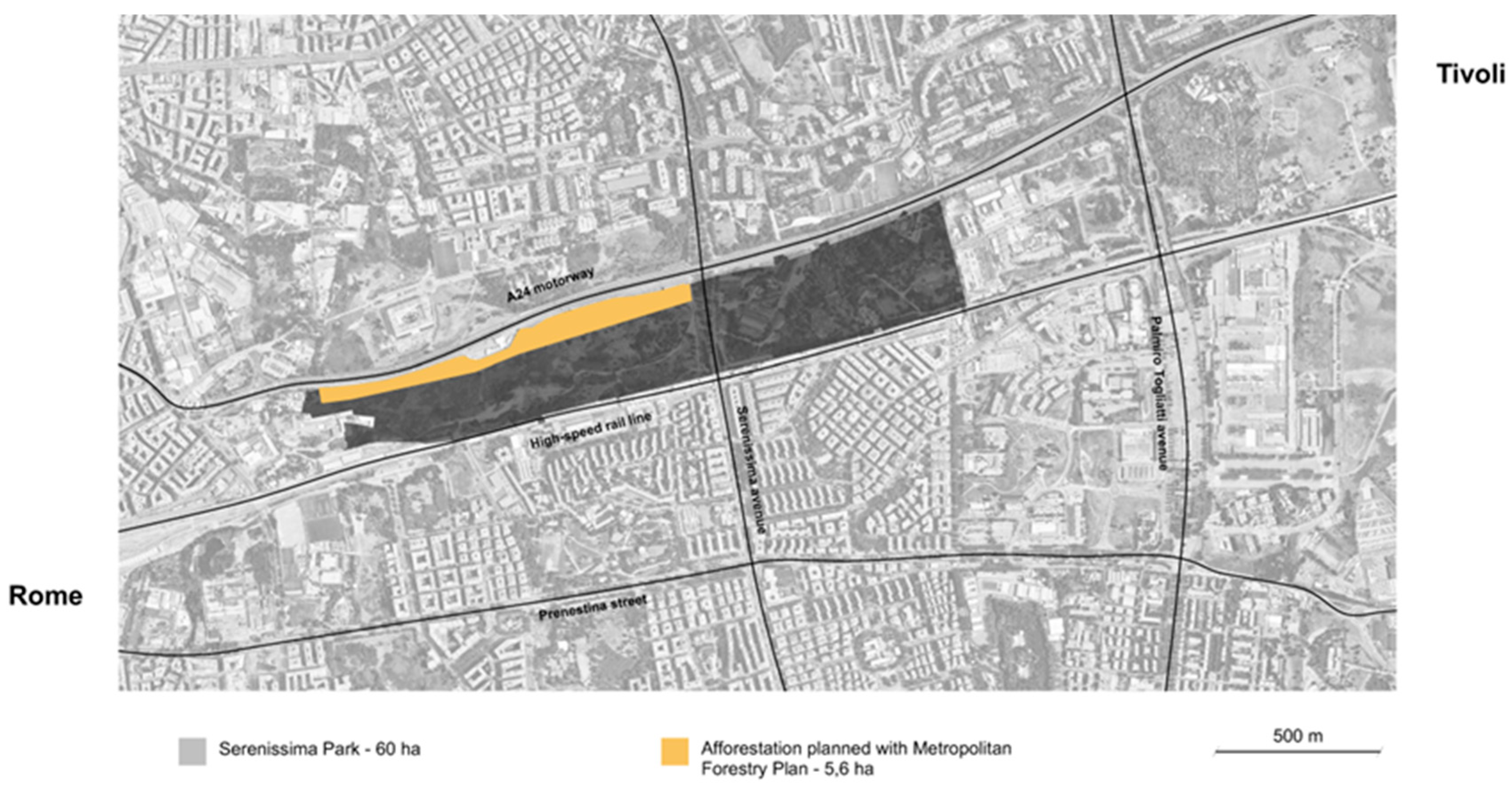- Città Metropolitana di Roma Capitale. Piano di Forestazione Urbana e Periurbana; Città Metropolitana di Roma Capitale: Rome, Italy, 2022.