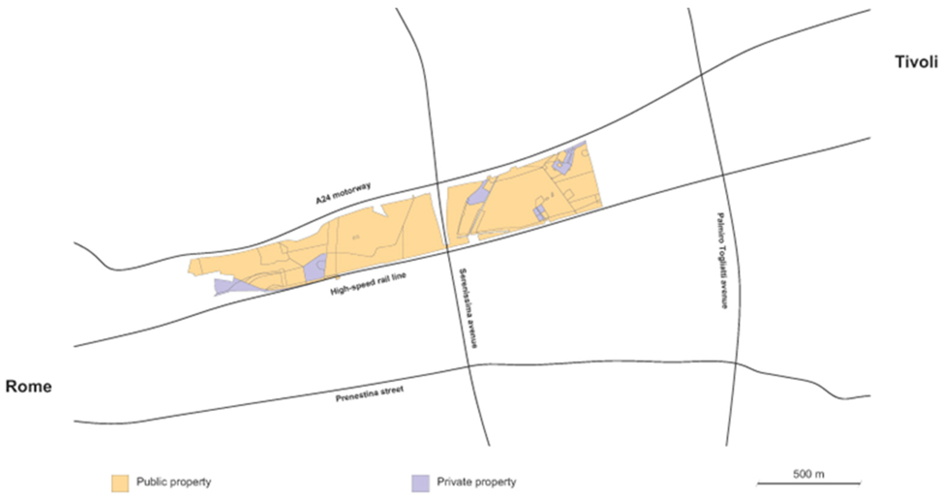 - The analysis of the land registry lots has highlighted that the land ownership is predominantly public, thus facilitating the future construction process (Figure 14).