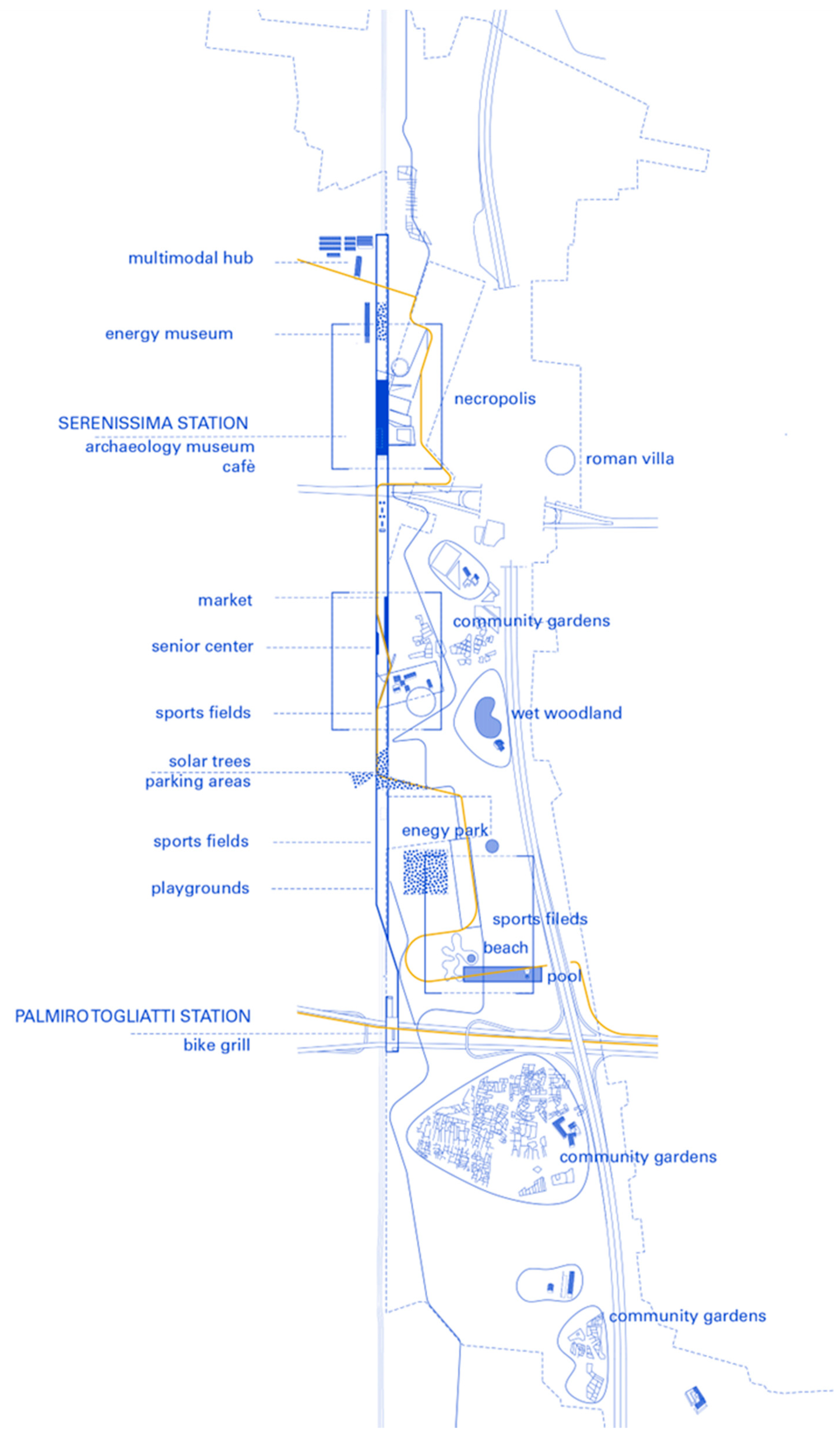 - Develop a “research by design” case study for the Serenissima Park, including:analysis of spatial potentials and criticalities;