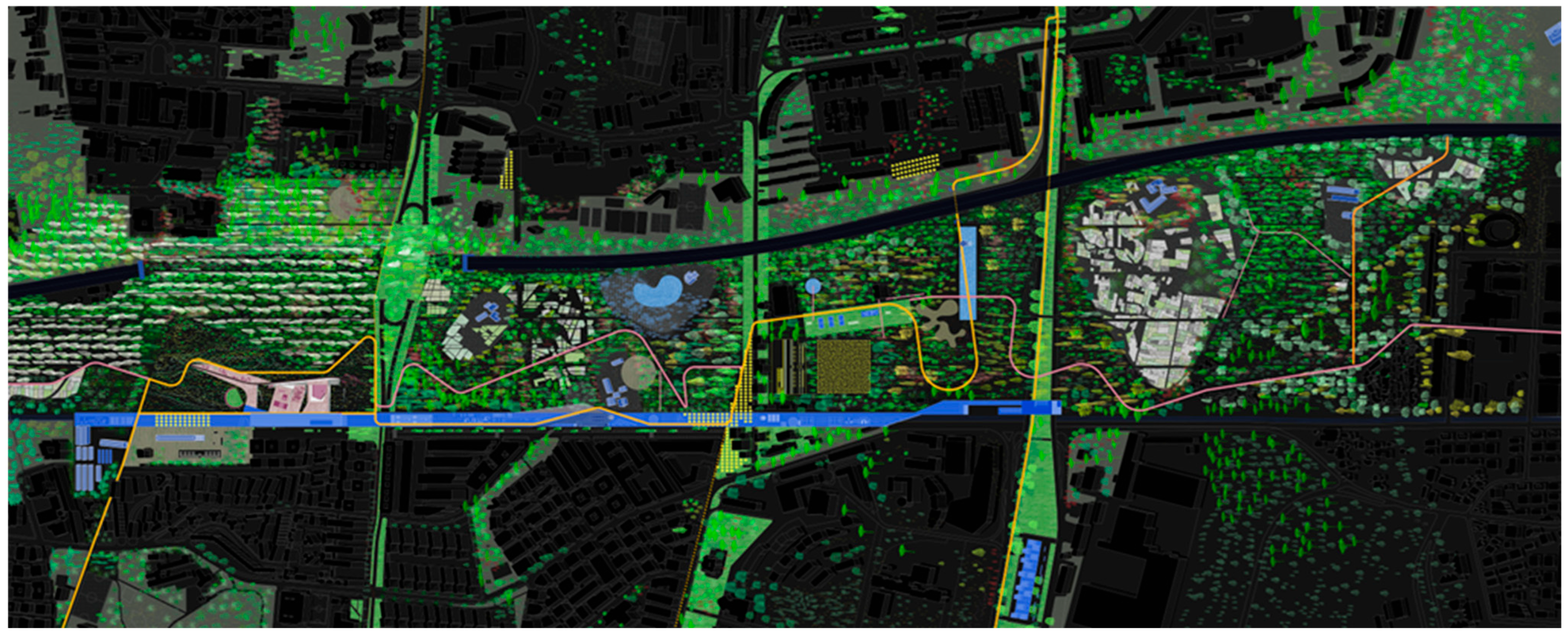 - Residual and infrastructural landscapes, where afforestation must negotiate mobility systems and brownfield conditions;