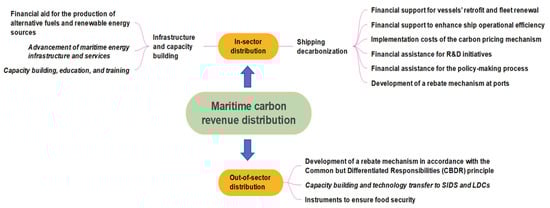 Regardless of the specific structure of future CPM in the maritime industry, the method of carbon revenue distribution remains a critical factor, as it can enhance the credibility of CPM and foster greater acceptability among maritime stakeholders and member states. Despite its critical importance, the role of carbon revenue recycling in the maritime industry remains insufficiently explored, with no detailed proposal for its implementation. Although the World Bank [] has outlined a general framework for revenue distribution, a comprehensive strategy remains absent. This research aims to address this gap by analyzing existing literature to identify and propose potential methods for carbon revenue recycling, thereby answering the following research questions (RQ):