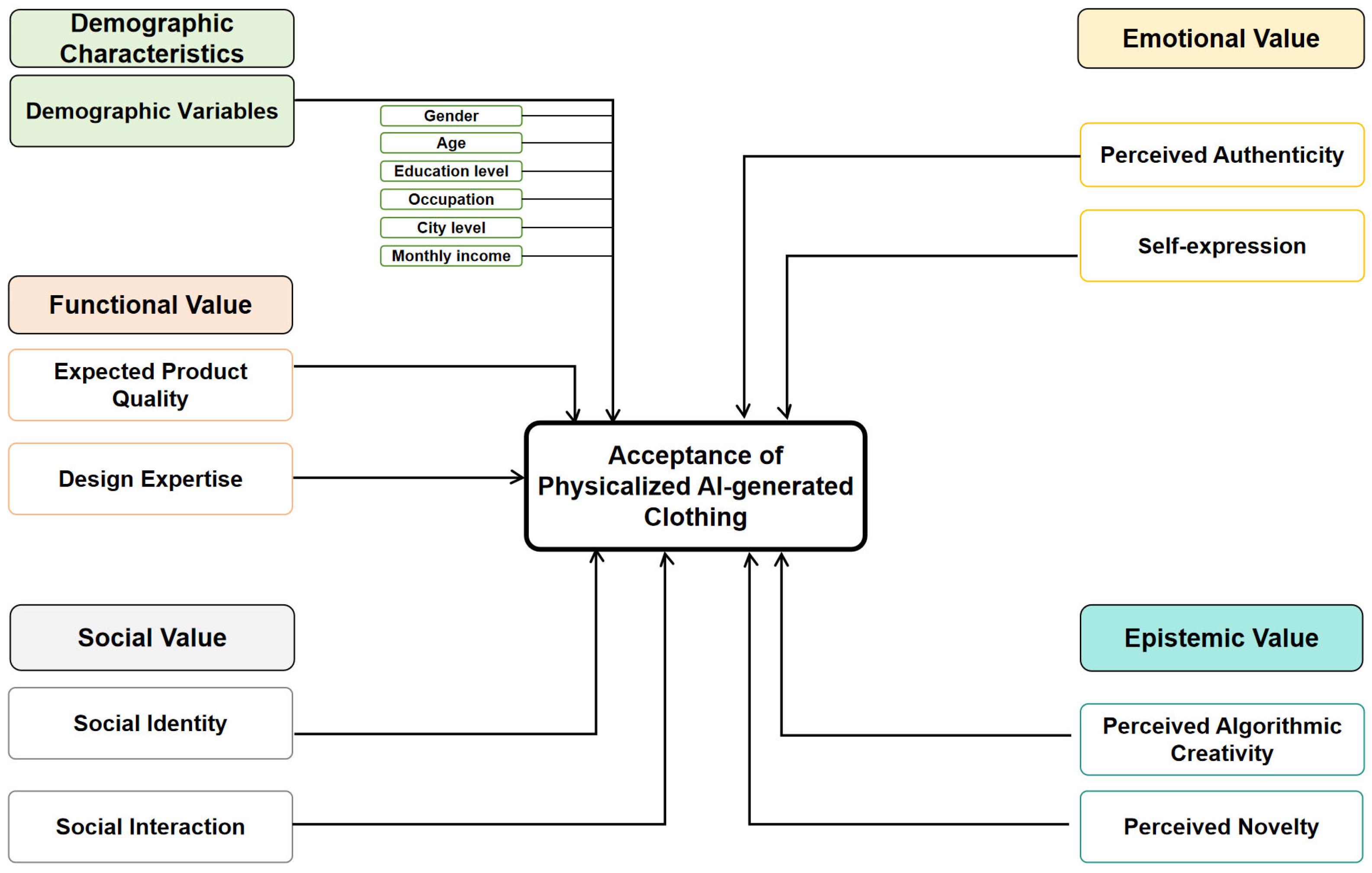 Huang X, Cui Y, Zhang Y, Cui R. From Algorithm to Reality: Exploring Chinese Consumers’ Acceptance of Physicalized AI-Generated Clothing in the Context of Sustainable Fashion. Sustainability. 2025; 17(23):10602. https://doi.org/10.3390/su172310602