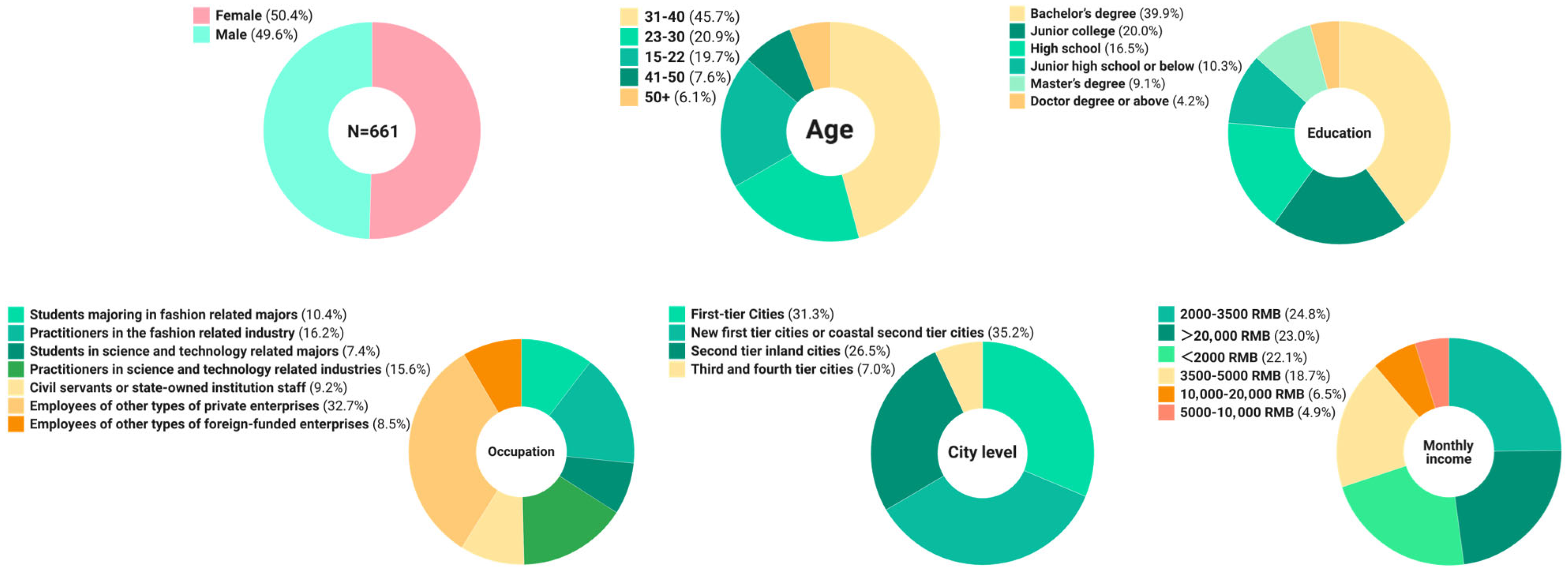 | Occu pation | Students majoring in fashion related majors | 2.077 | 0.181 | 7.980 | 0.381–167.050 | 4.388 | 0.009 ** | 80.500 | 3.019–2146.776 |
