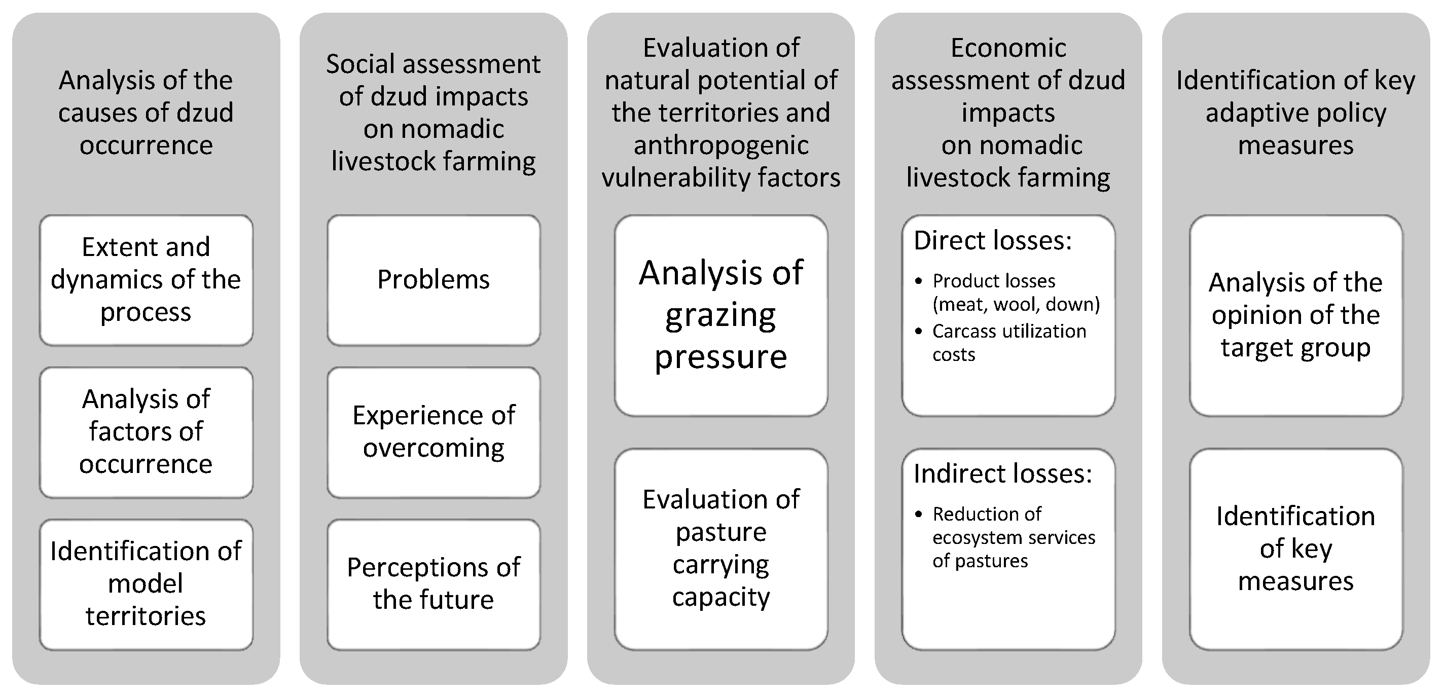Research gaps, in our opinion, are due to the lack of comprehensive theoretical justifications and assessments of the actual manifestation of the effects of the dzud disaster using statistical information, spatial climate data, and comprehensive sociological research.