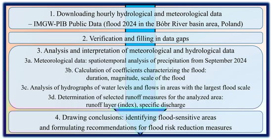 The article uses and processes hourly meteorological and hydrological data available on websites run by the Polish Institute of Meteorology and Water Management—National Research Institute (IMGW-PIB), i.e., Hydro IMGW-PIB and IMGW-PIB Public Data [45,46]. Data from September and October 2024 were collected to analyze the course of flooding in the Bóbr River Basin.