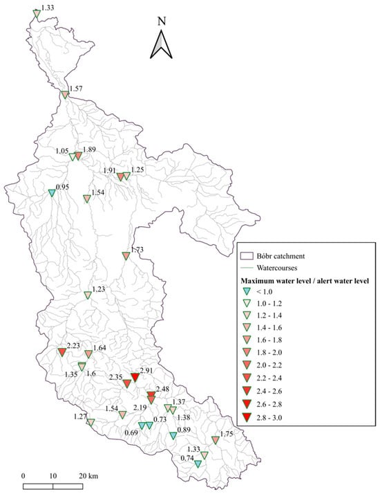 Flood magnitude in the Bóbr River Basin from 12 September to 4 October 2024.