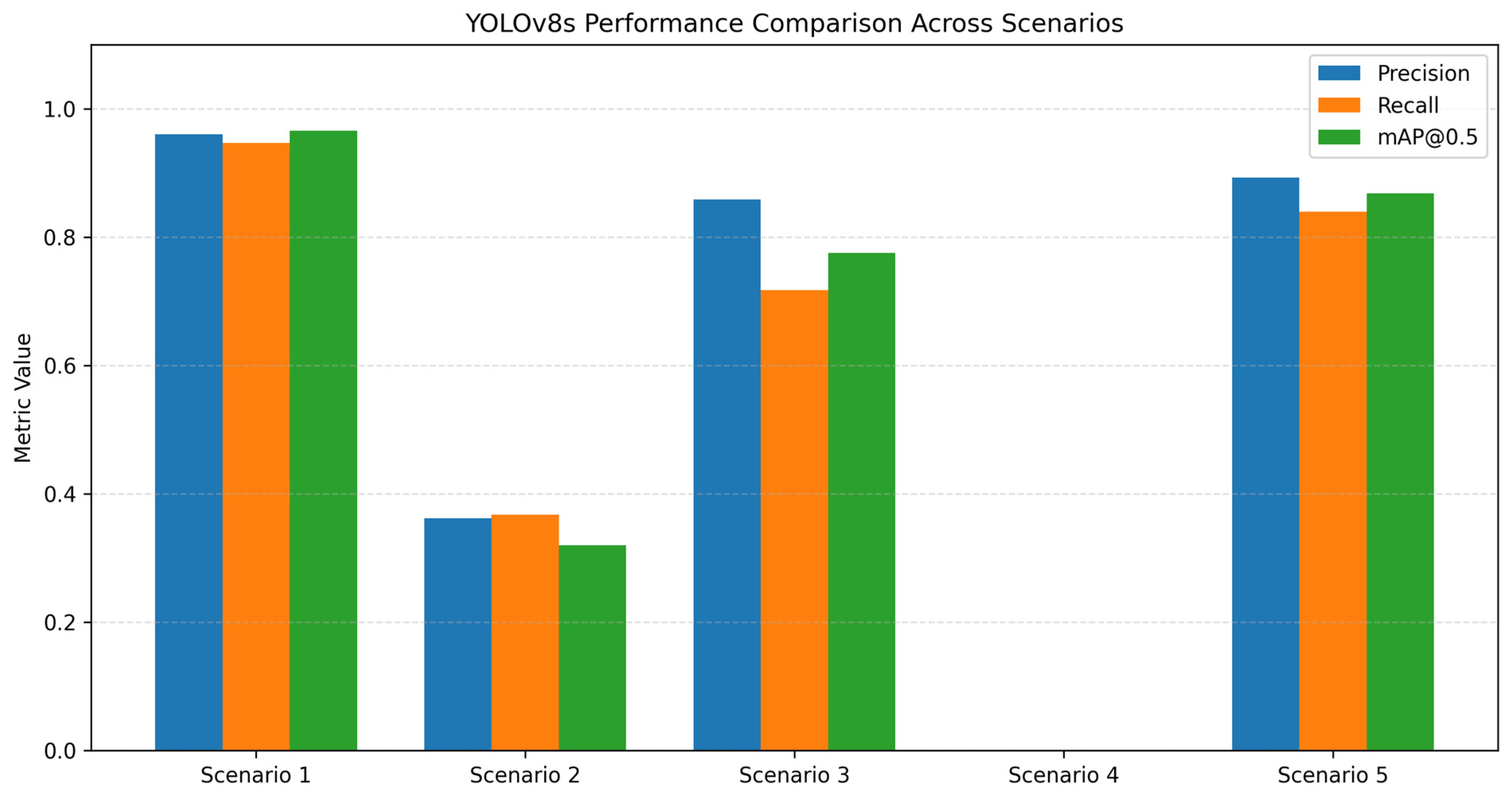 Collectively, the outcomes of Scenarios 1–5 demonstrate that dataset domain alignment, class balance, and moderate fine-tuning are decisive factors for achieving stable and transferable road-defect detection performance across heterogeneous environments.