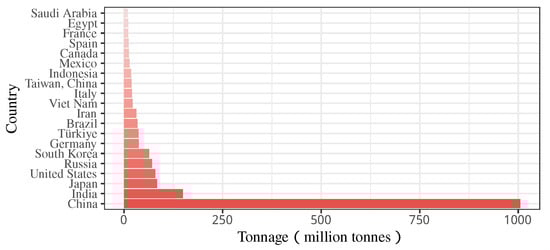 In the context of globalization, reducing greenhouse gas emissions has become a global consensus [1,2,3]. As the world’s largest emitter of carbon dioxide, China explicitly announced its goals of “reaching peak carbon emissions by 2030 and achieving carbon neutrality by 2060” [4] at the 75th session of the United Nations General Assembly. The 15th Five-Year Energy Development Plan [5] further positions energy transition as the core pathway to achieving the dual carbon goals, emphasizing the need to increase the share of non-fossil energy consumption and drive high-carbon industries such as steel from “energy structure adjustment” to “full-chain low-carbon transformation”. As a pillar industry of the national economy, China’s steel sector has maintained its position as the world’s largest producer for over 20 consecutive years, accounting for approximately 53.33% of global output (World Steel Association). Carbon emissions from the steel industry constitute about 15% of China’s total emissions, with energy consumption-related emissions exceeding 80% of this share (see Figure 1 and Figure 2). Therefore, the depth of the energy transition directly determines the pace and quality of achieving the dual carbon goals, and the transformation process of the steel industry has become a key benchmark for optimizing the energy structure of China’s high-carbon industries [6,7].