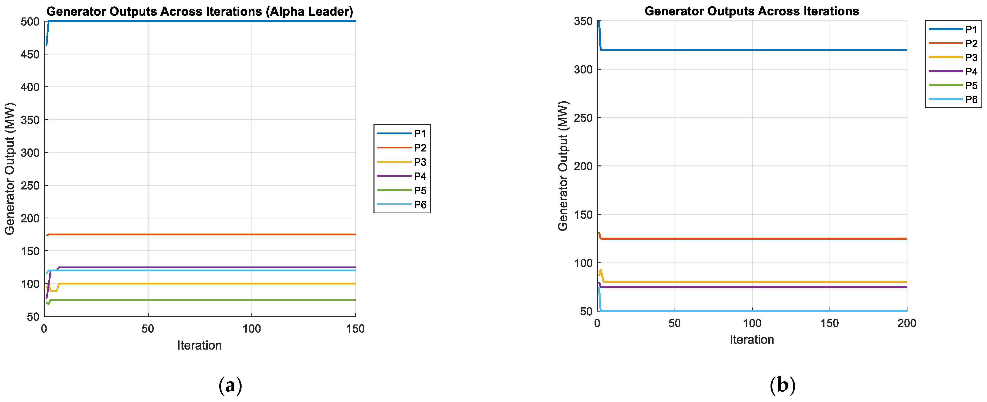 3.4.2. Case 2: Six-Unit Generator System with 1263 MW Power Demand