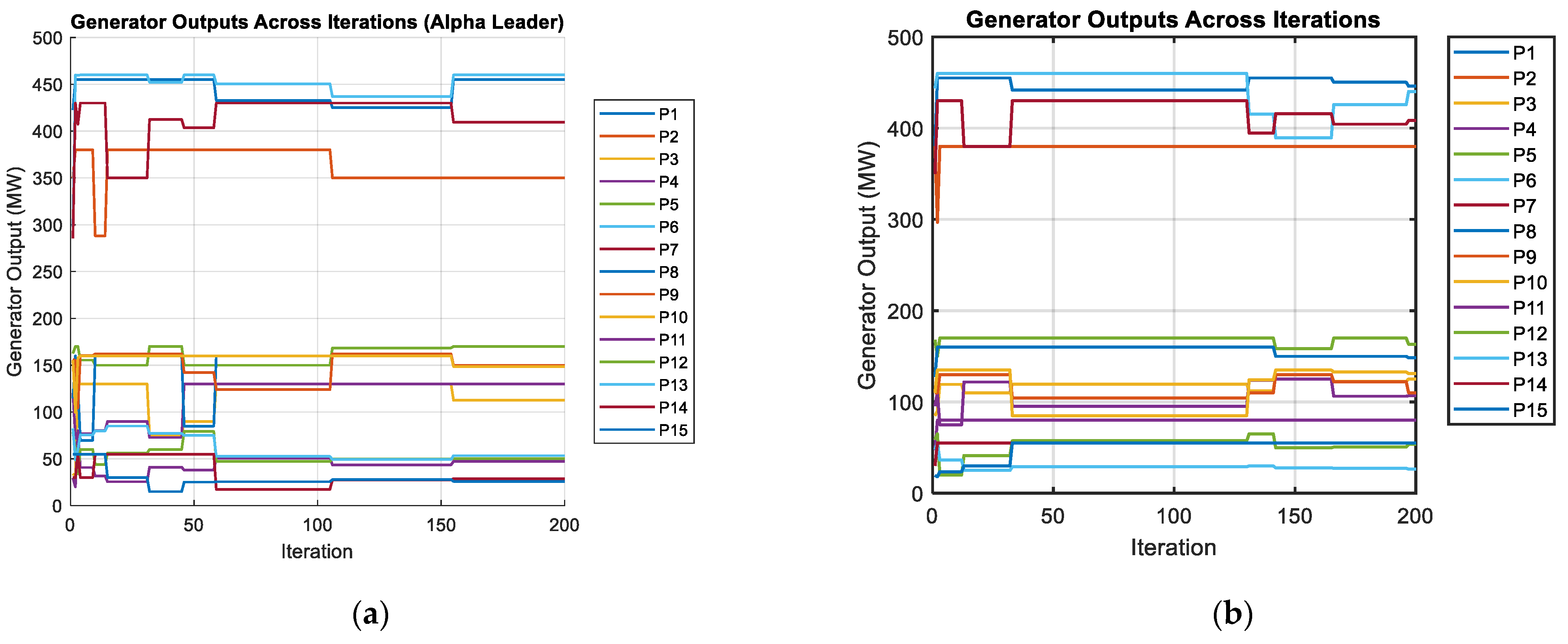 3.4.3. Case 3: Fifteen-Unit Generator System with Demand of 2630 MW