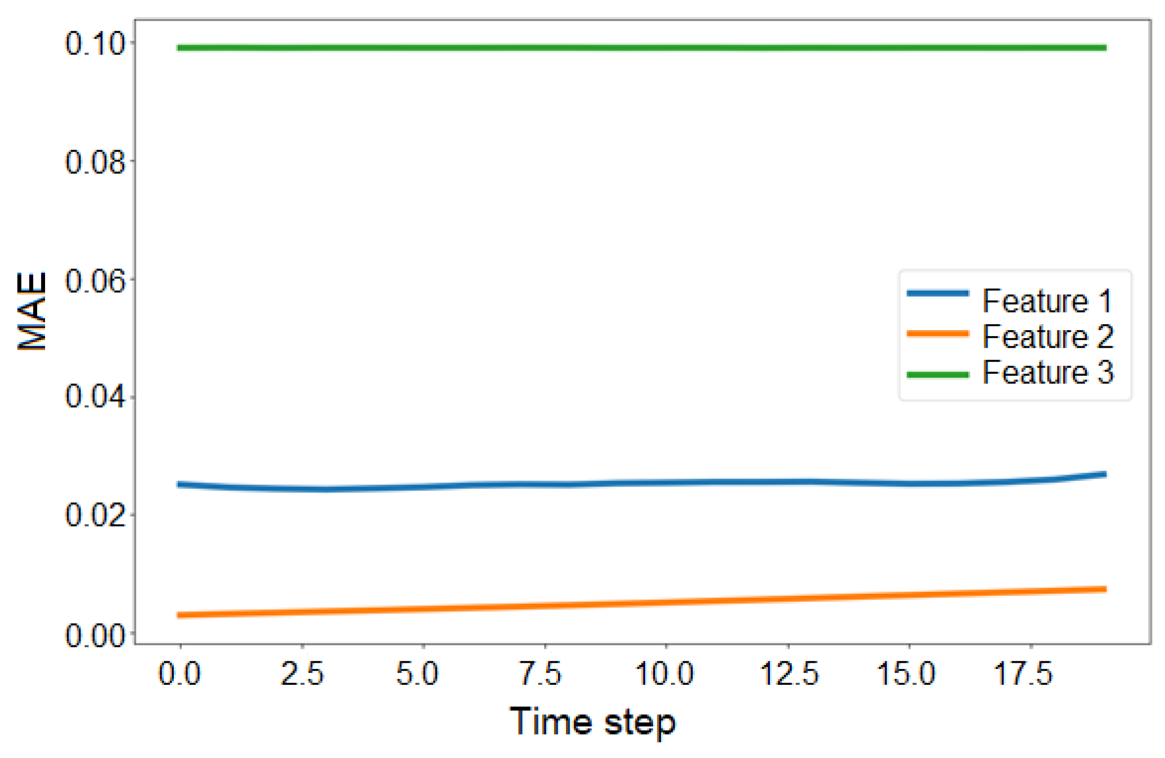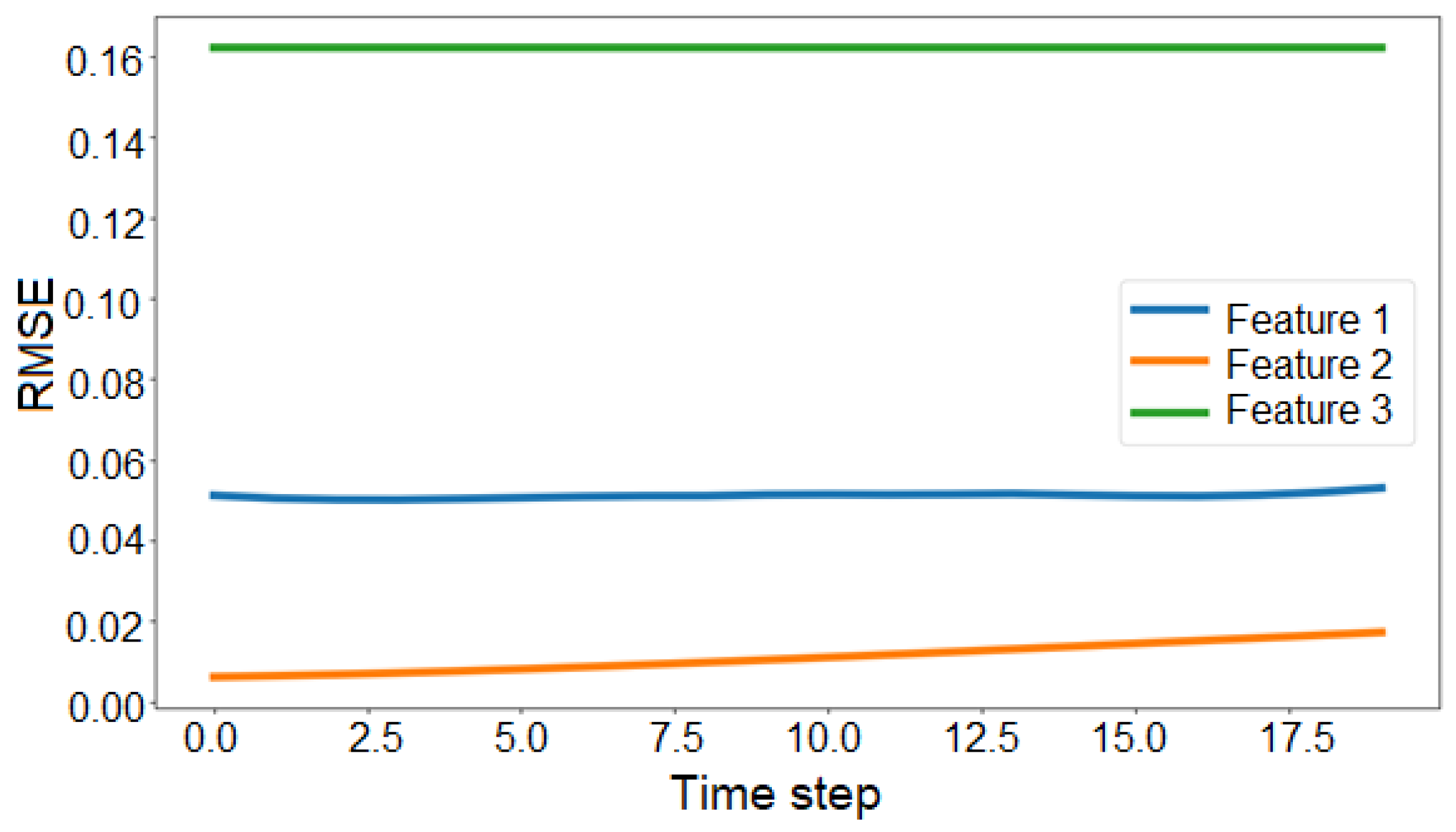 The error in the prediction steps increases smoothly, without jumps and without acceleration. MAE grows from 0.044 to 0.046, RMSE increases from 0.1007 to 0.1014, and the error variance remains almost unchanged. This indicates the high stability of the model and the absence of error accumulation as the prediction horizon increases.