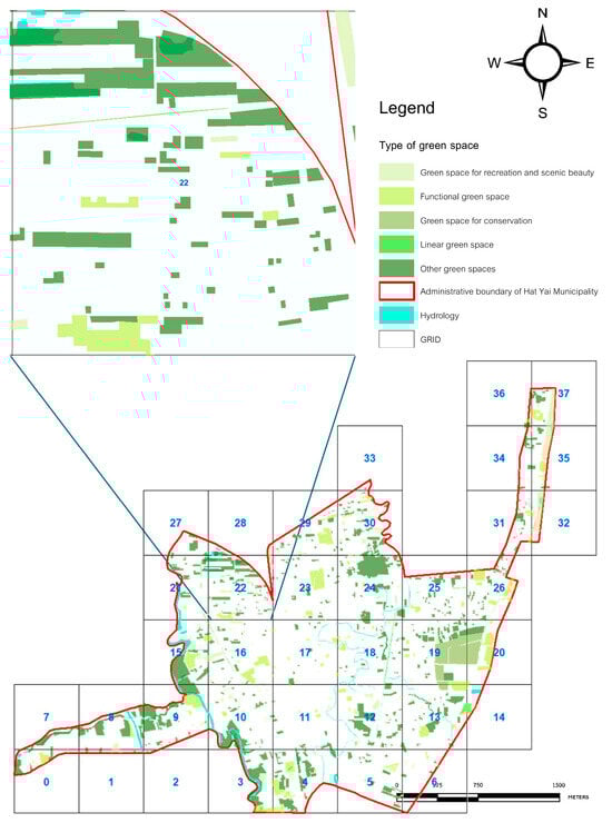 Green space data in Hat Yai Municipality, with details of grid 22.