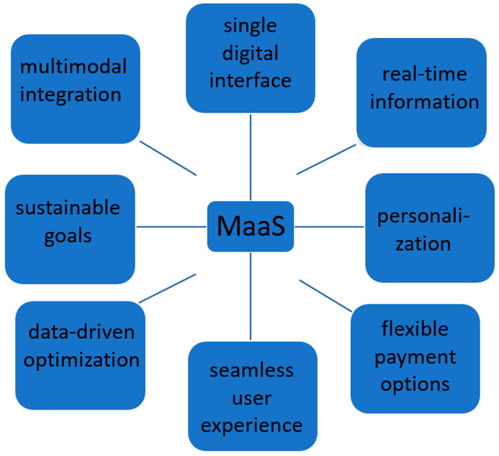 The concept of Mobility as a Service (MaaS) was first proposed by Heikkilä [14] as “a system in which a comprehensive range of mobility services are provided to customers by mobility operators”. Initially, MaaS was conceived as a user-centric paradigm [15], aiming to integrate heterogeneous transport services into a single digital interface. This early vision prioritized convenience by enabling users to plan, book, and pay for multimodal journeys, combining public transit, ride-hailing, bike-sharing, car rentals, and other options, within one seamless platform [16].