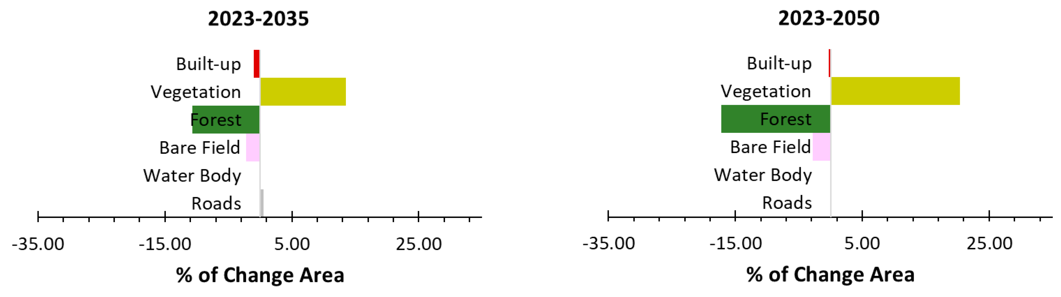 Figure 19. Changes in predicted land cover classes for 2035, 2050, 2065, 2080, and 2095 relative to 2023.