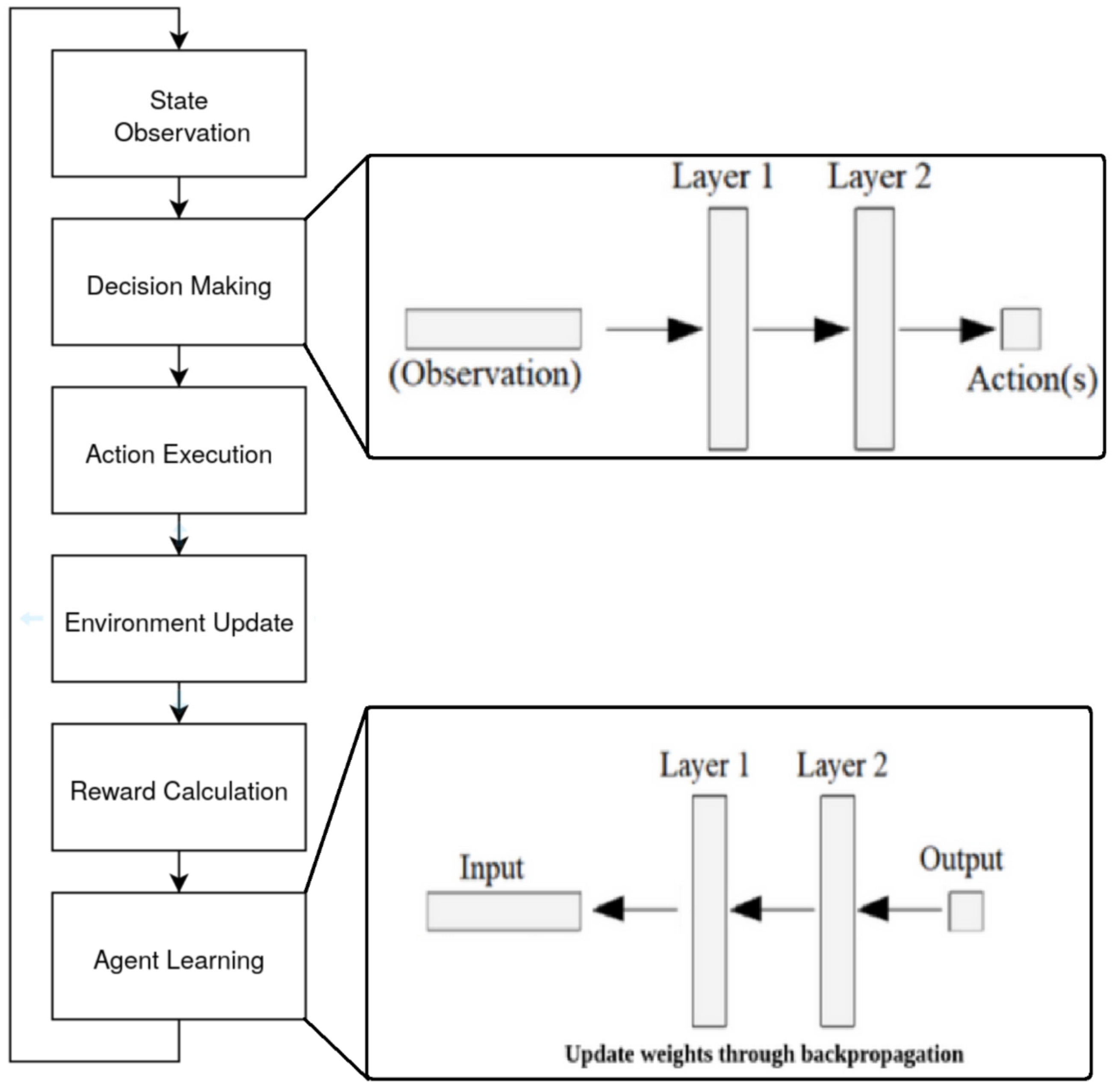- Fang, X.; Hong, P.; He, S.; Zhang, Y.; Tan, D. Multi-Layer Energy Management and Strategy Learning for Microgrids: A Proximal Policy Optimization Approach. Energies 2024, 17, 3990. [Google Scholar] [CrossRef]