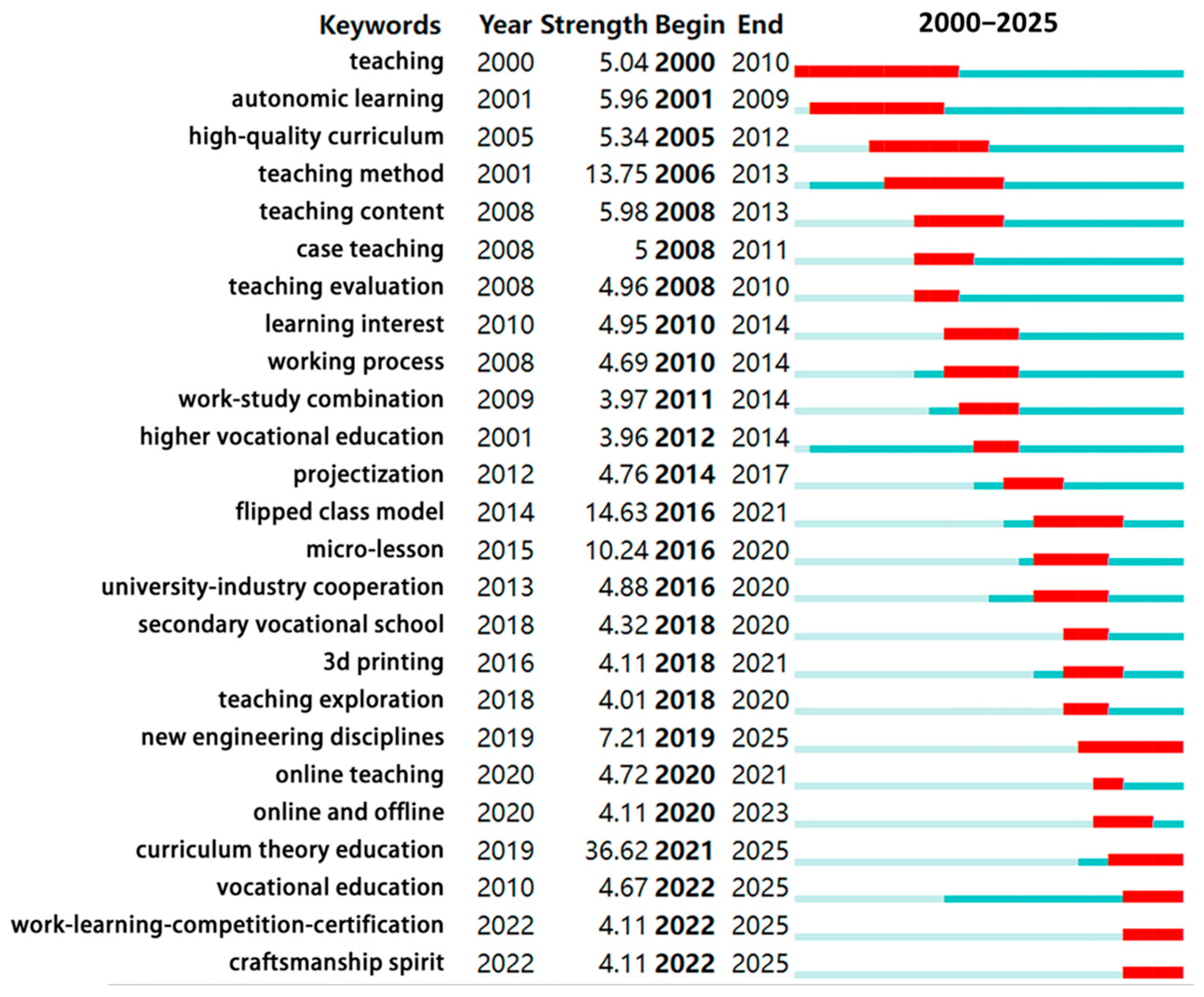 | Applications and Practice | #2 | 27 | 0.902 | Vocational Colleges | Vocational Colleges (43.92); Image Processing (42.24); Information Technology (28.74); Tasks (18.72); Secondary Vocational Education (15.74) |