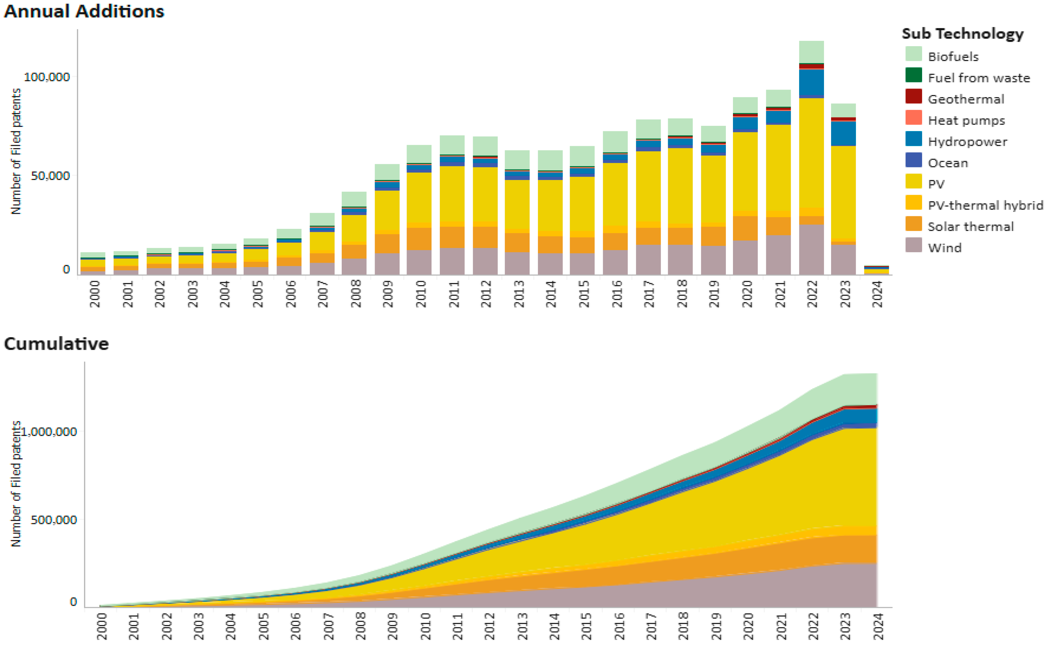 Table 6 present detailed data on the current level of employment. Furthermore, solar photovoltaics remained the largest employer in 2023, accounting for 7.2 million jobs. Significant numbers of jobs were also recorded in the liquid biofuels, hydropower, and wind energy sectors. The agency reports that 2024 saw a record increase in the installed capacity of renewable energy sources, which directly translates into job creation [