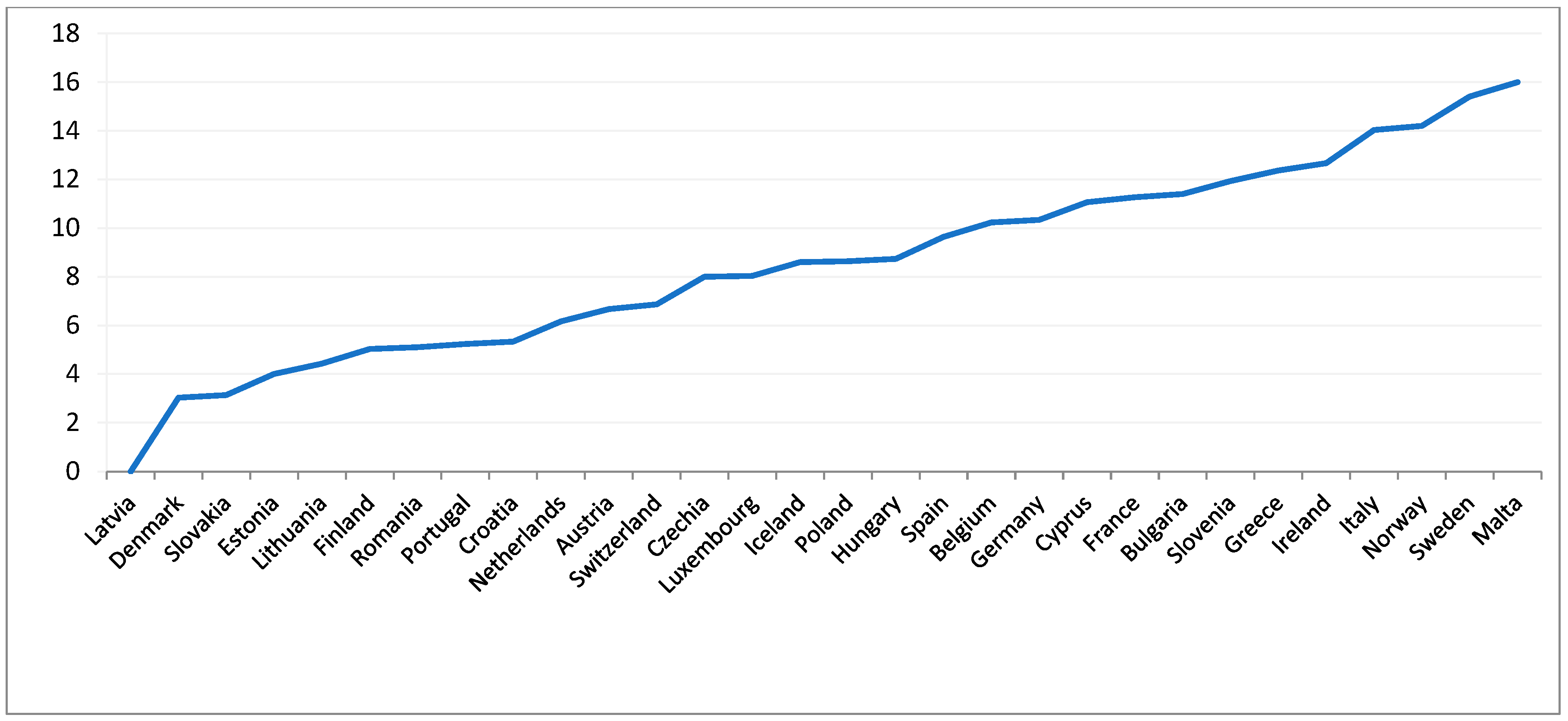 50]. This thesis is reflected in the latest data published by the World Bank, which estimates human capital levels using its own methodology. It transpires that, despite being considered highly developed, European countries exhibit significant variation in terms of this resource (see