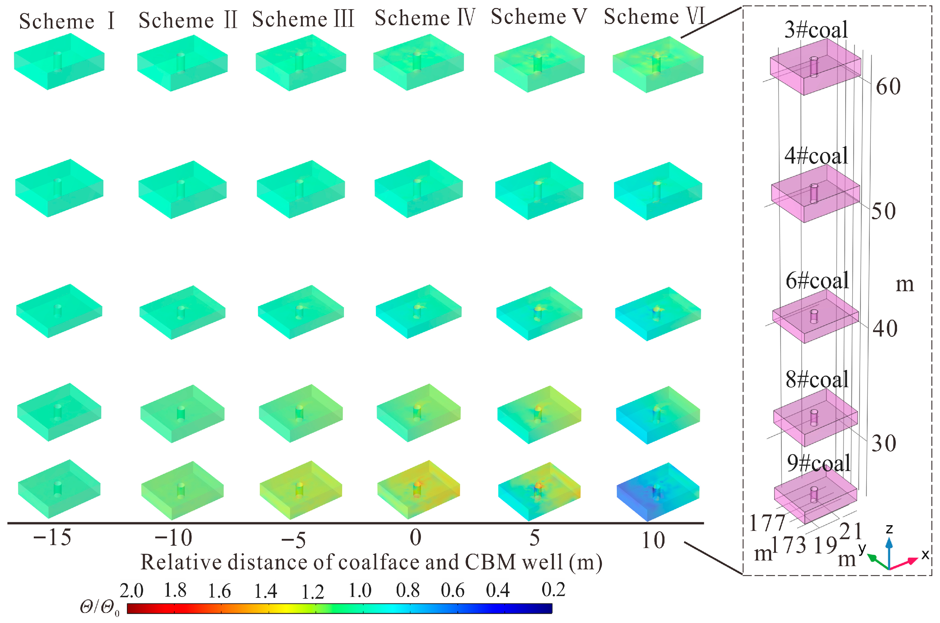 - Zhao, J. Study on Numerical Simulation and Application of Gob Coal Seam Gas Well Productivity in Longwall Working Face. Ph.D. Thesis, China Coal Research Institute, Xi’an, China, 2018. [Google Scholar] [CrossRef]