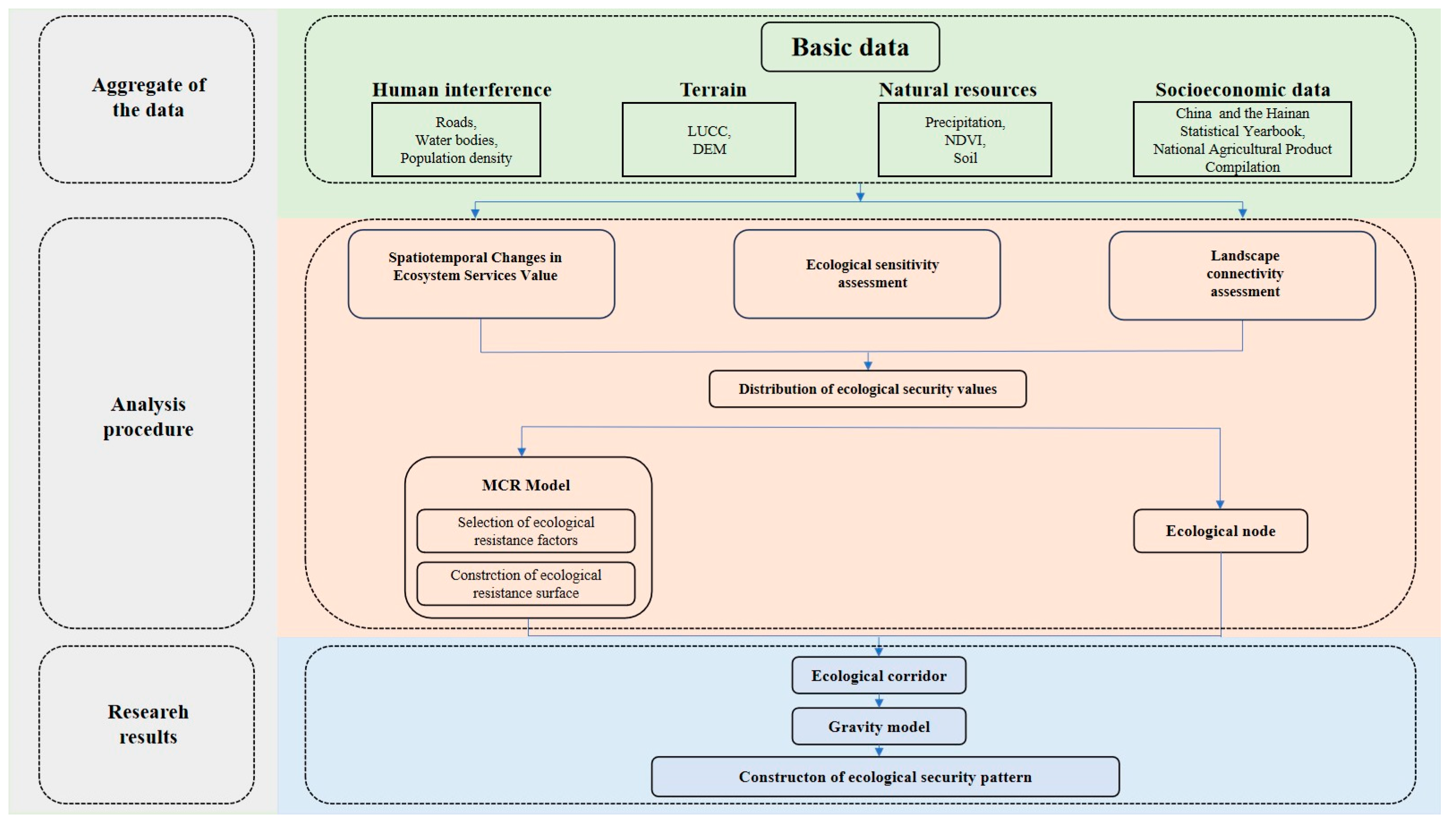 APA StyleZhao, Y., Feng, Y., Liu, Q., Mo, Y., Zhuo, S., & Zhou, P. (2025). Ecological Security Assessment Based on Sensitivity, Connectivity, and Ecosystem Service Value and Pattern Construction: A Case Study of Chengmai County, China. Sustainability, 17(23), 10724. https://doi.org/10.3390/su172310724