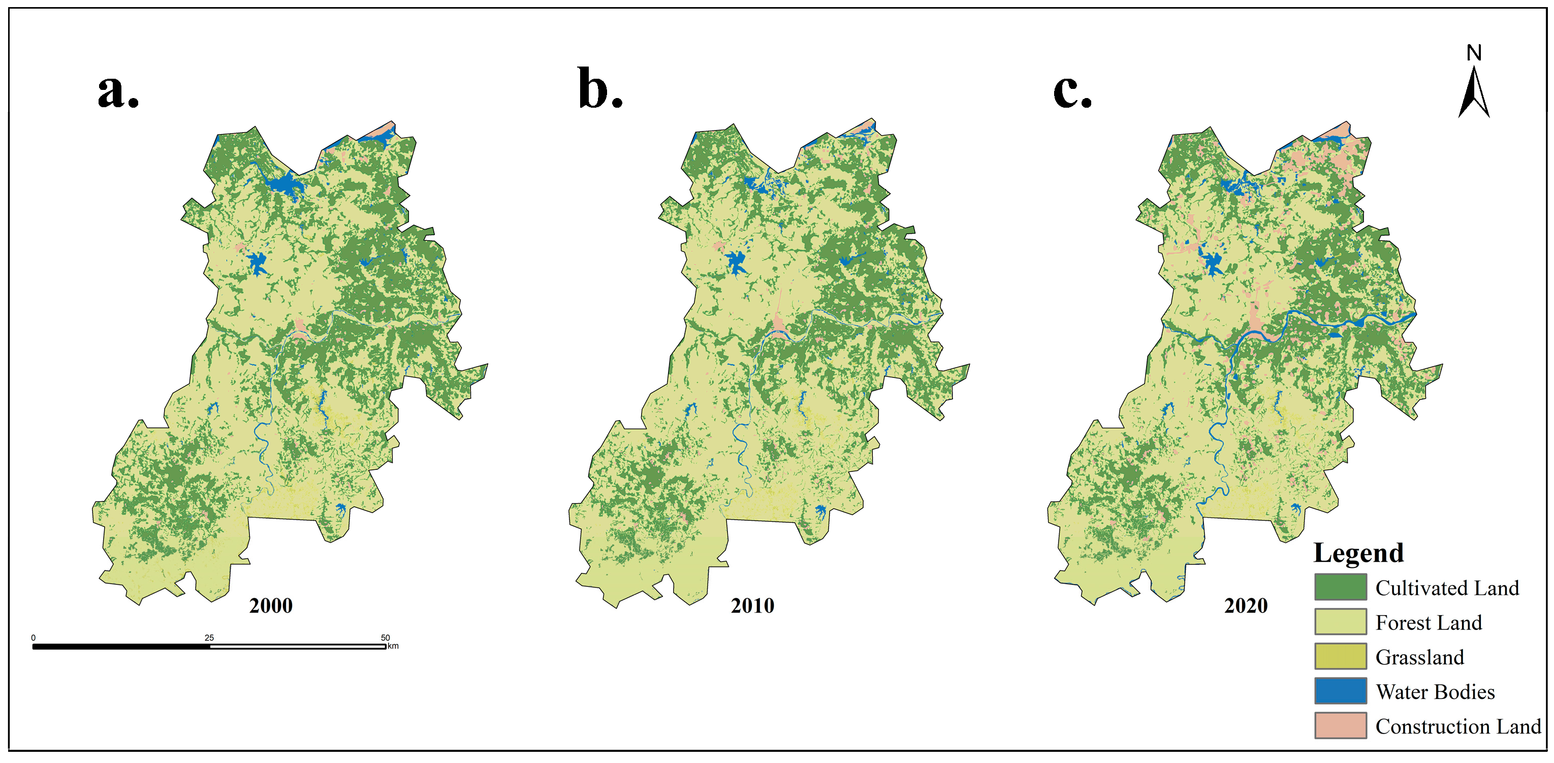 | Land Use Type | Cultivated Land | Forest Land | Grassland | Water Bodies | Construction Land | Unutilized Land | |