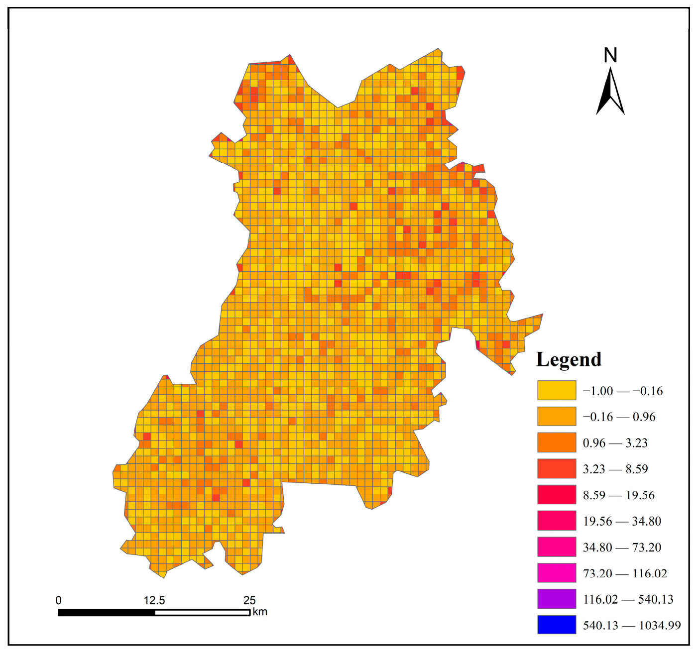 3.3.2. Spatial Distribution of Ecosystem Service Change Index