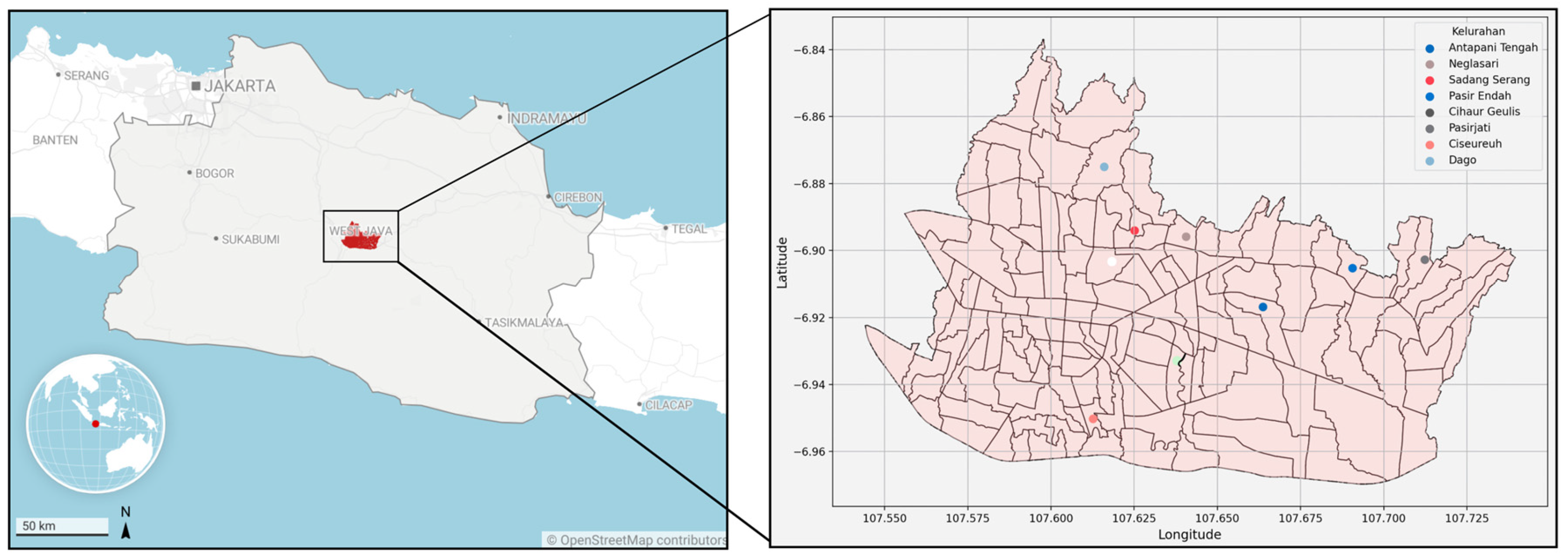 - Rahmasary, A.N.; Koop, S.H.A.; van Leeuwen, C.J. Assessing Bandung’s Governance Challenges of Water, Waste, and Climate Change: Lessons from Urban Indonesia. Integr. Environ. Assess. Manag. 2021, 17, 434–444. [Google Scholar] [CrossRef]