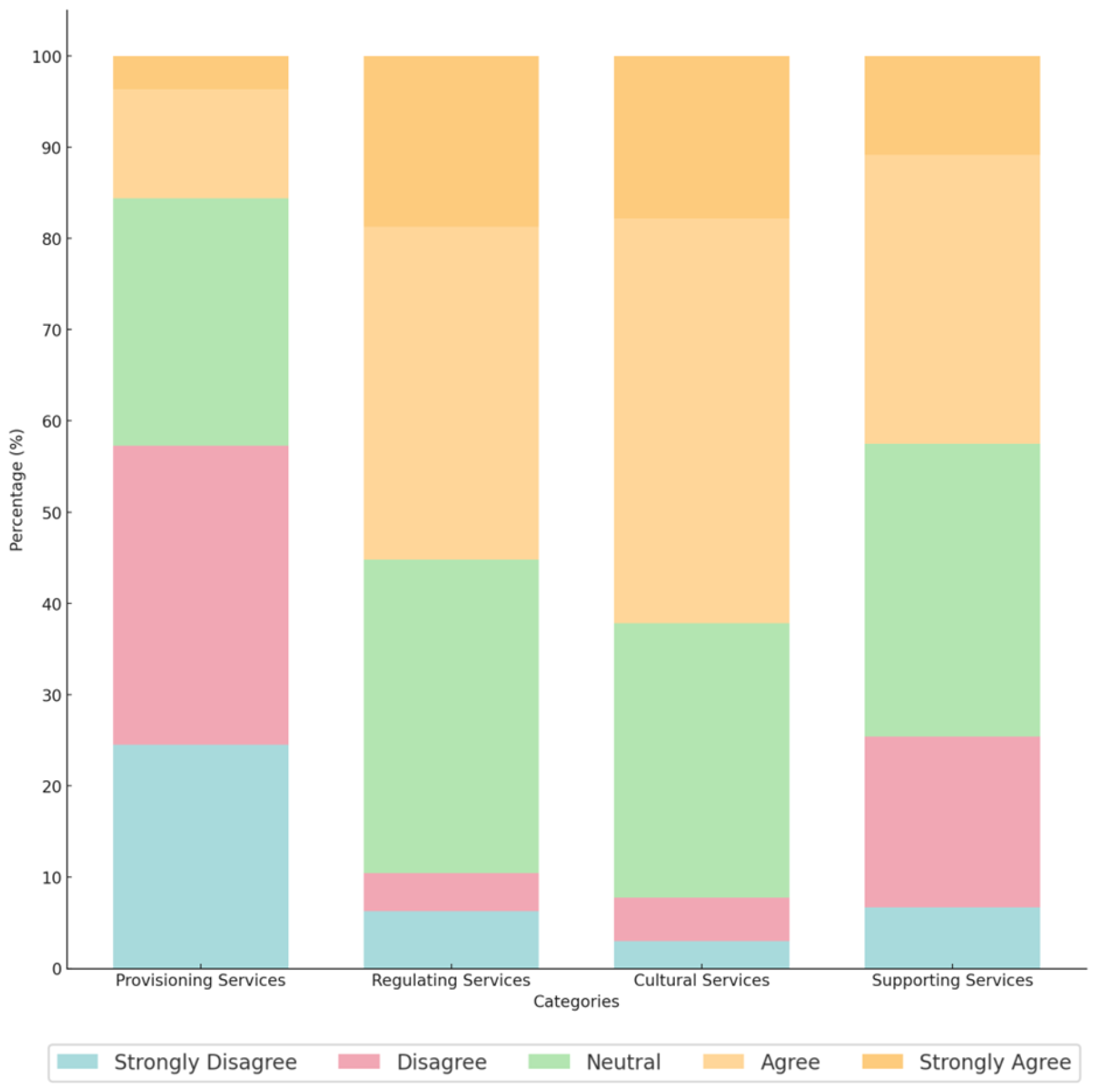 - Sultana, S.; Haque, M.E.; Afrad, M.S.I.; Rahman, G.M.M.; Rahman, M.M. Farmers’ Perception Towards Forest Ecosystem Services and Human Well-Being. Eur. J. Agric. Food Sci. 2023, 5, 25–32. [Google Scholar] [CrossRef]