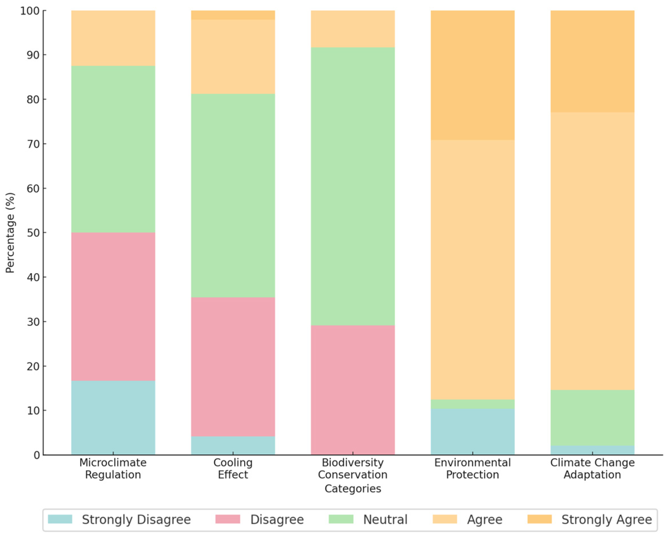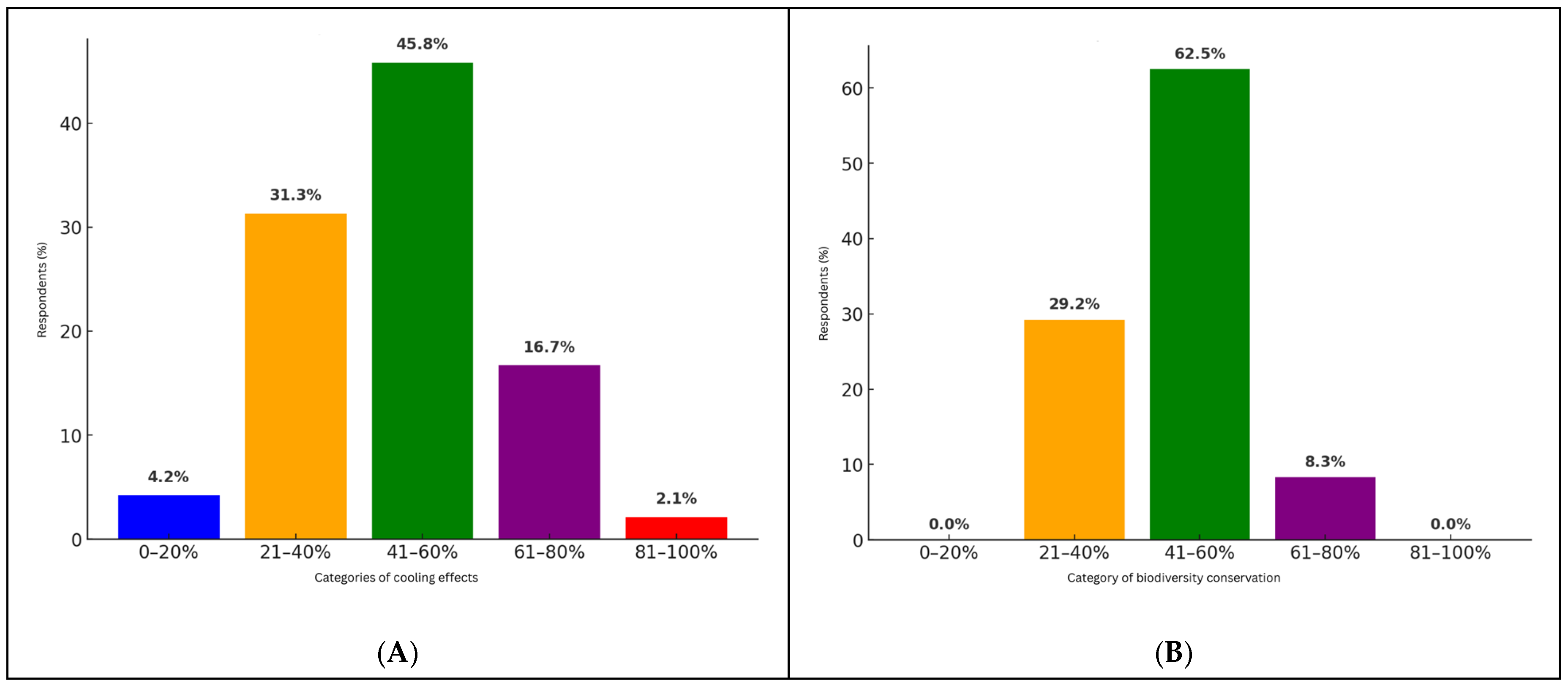 3.2.1. Perception of Microclimate Regulation and Cooling Effects