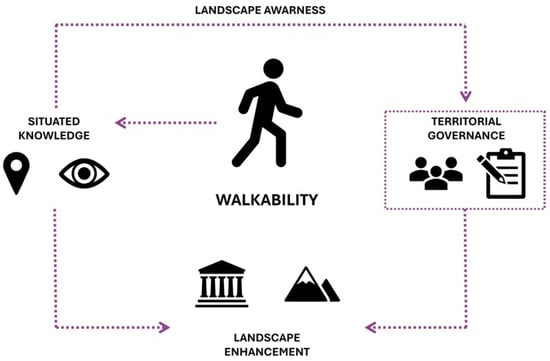 Walkability may be intended as a way to channel community awareness of landscape in efficient governance and planning dynamics (elaboration of I. Pistone).